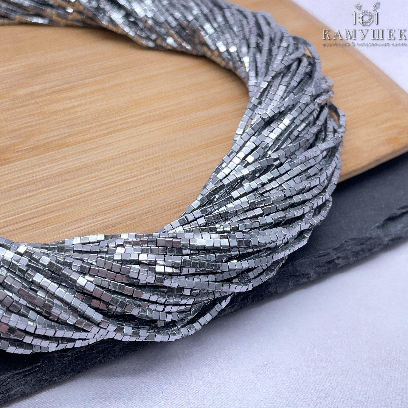 1,5 мм Гематин имитация, цвет темное серебро, куб
