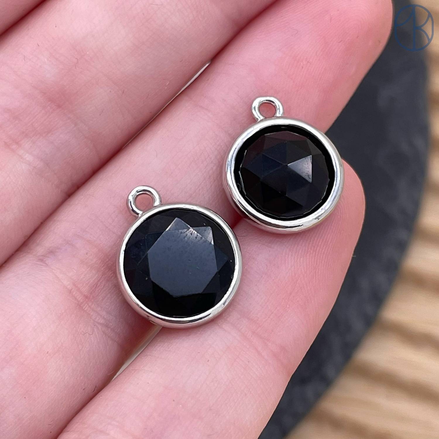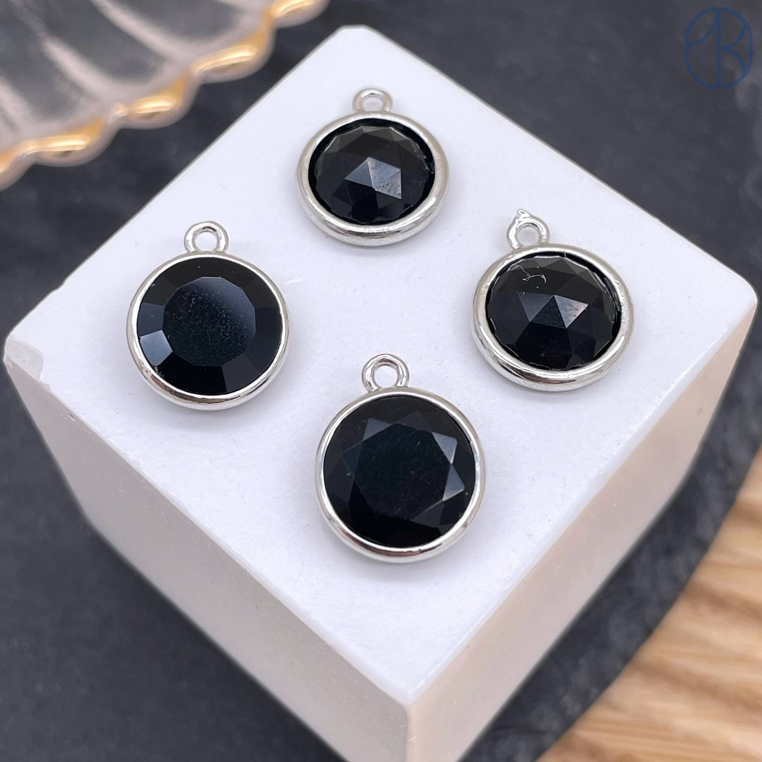 10, 5мм, цвет серебро, Подвеска круг мини Черный агат огранка