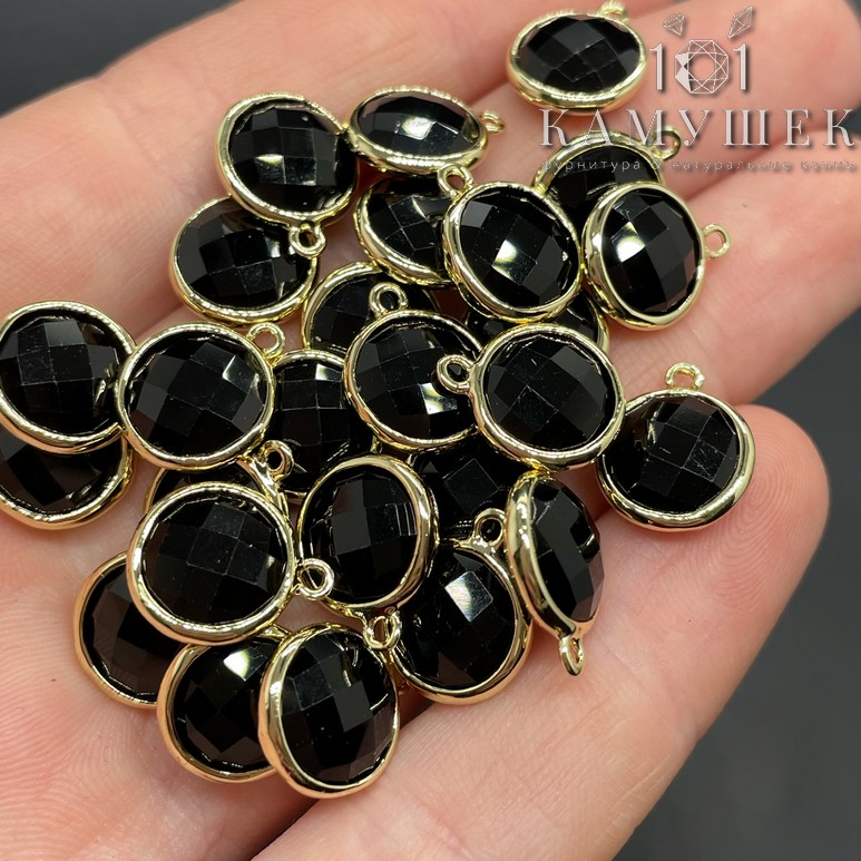 10, 5мм, цвет золото, Подвеска круг мини Черный агат огранка
