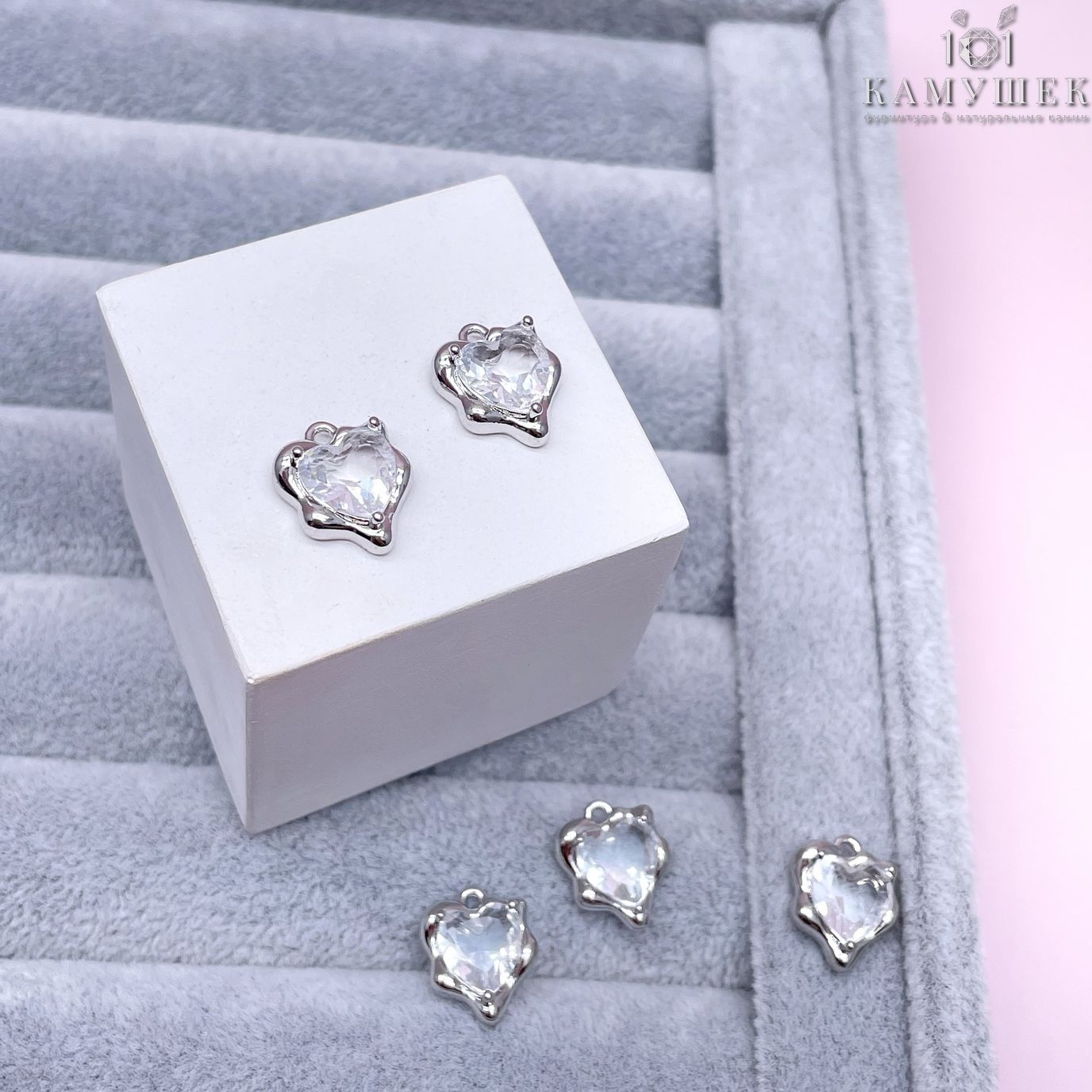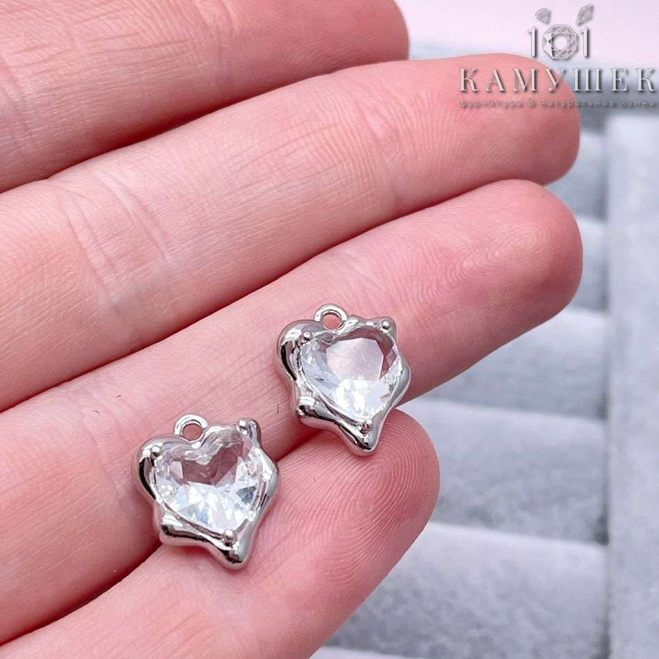 11, 3*13мм, цвет серебро, Подвеска сердце неровное белый циркон