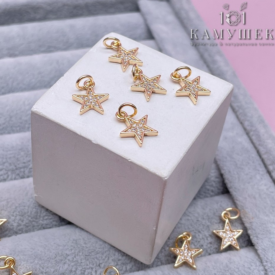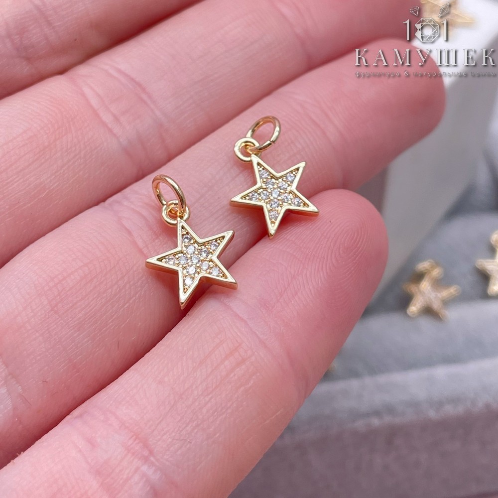 Подвеска звезда цирконы, цвет золото 12х10 мм