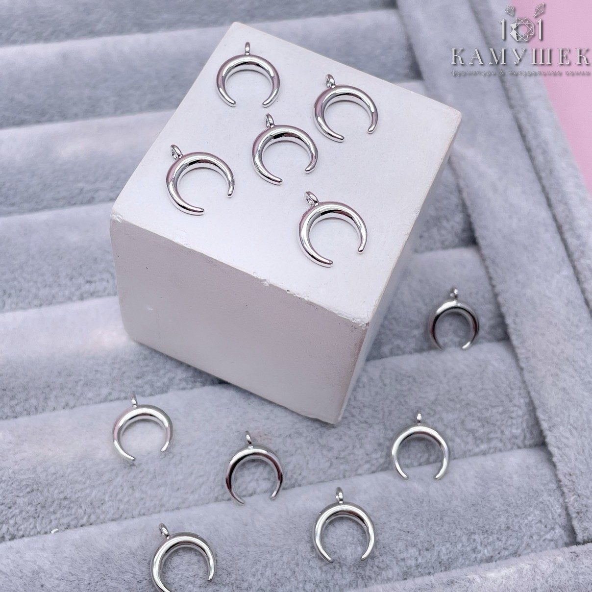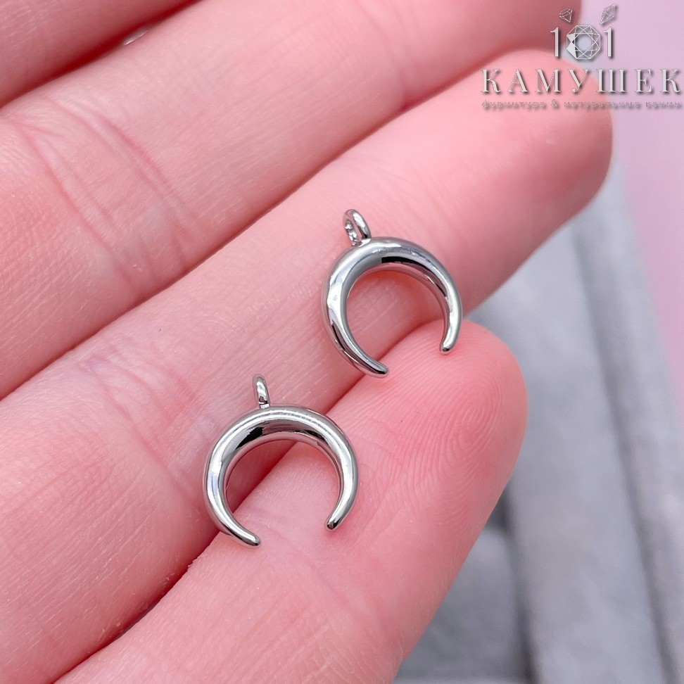 Подвеска лунница гладкая, цвет серебро 12х10 мм