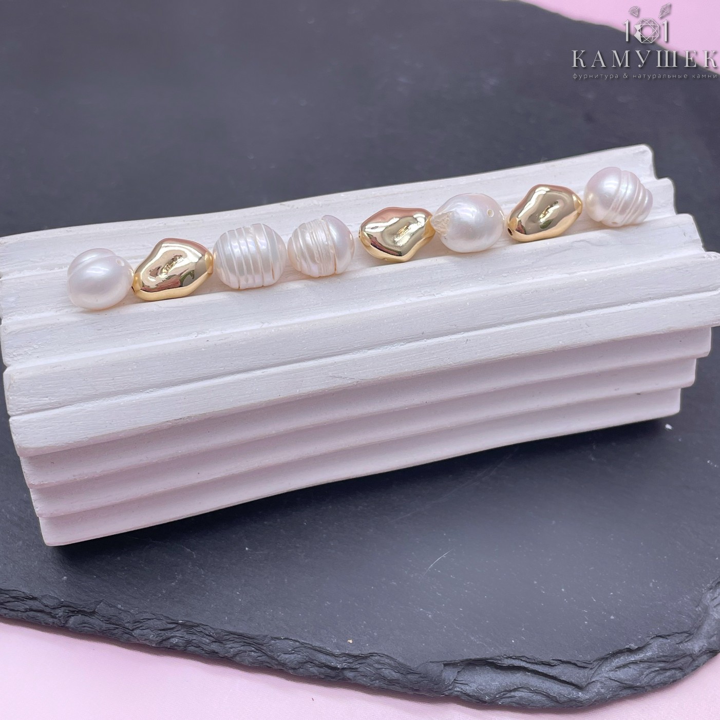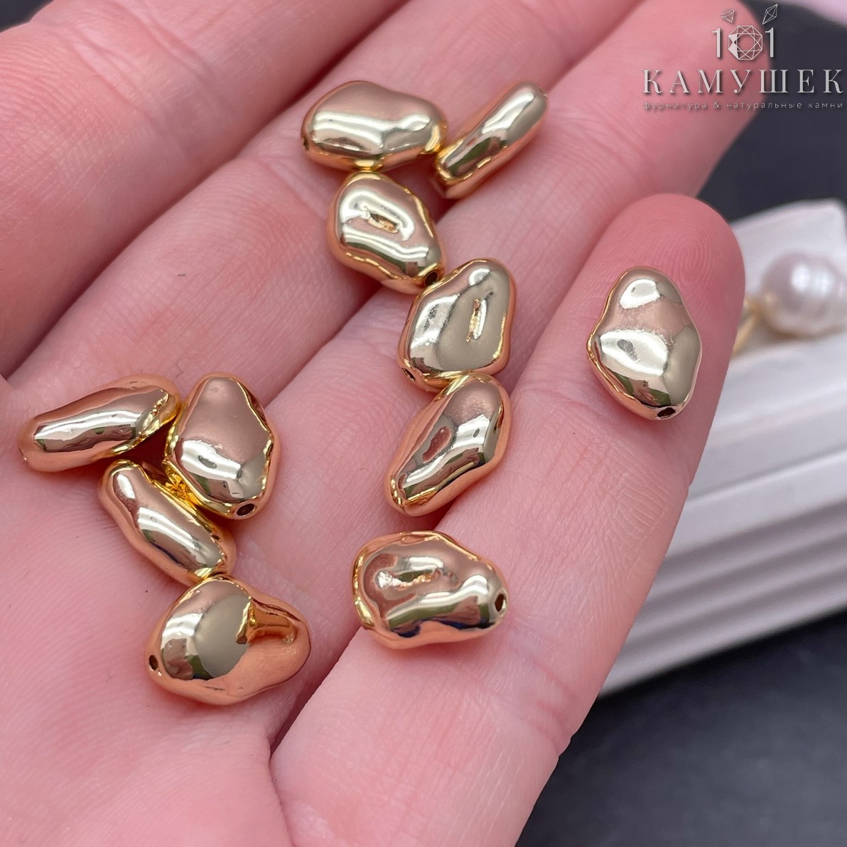 Бусина овал мятая цирконы фриформ, Цвет серебро, 9х12 мм
