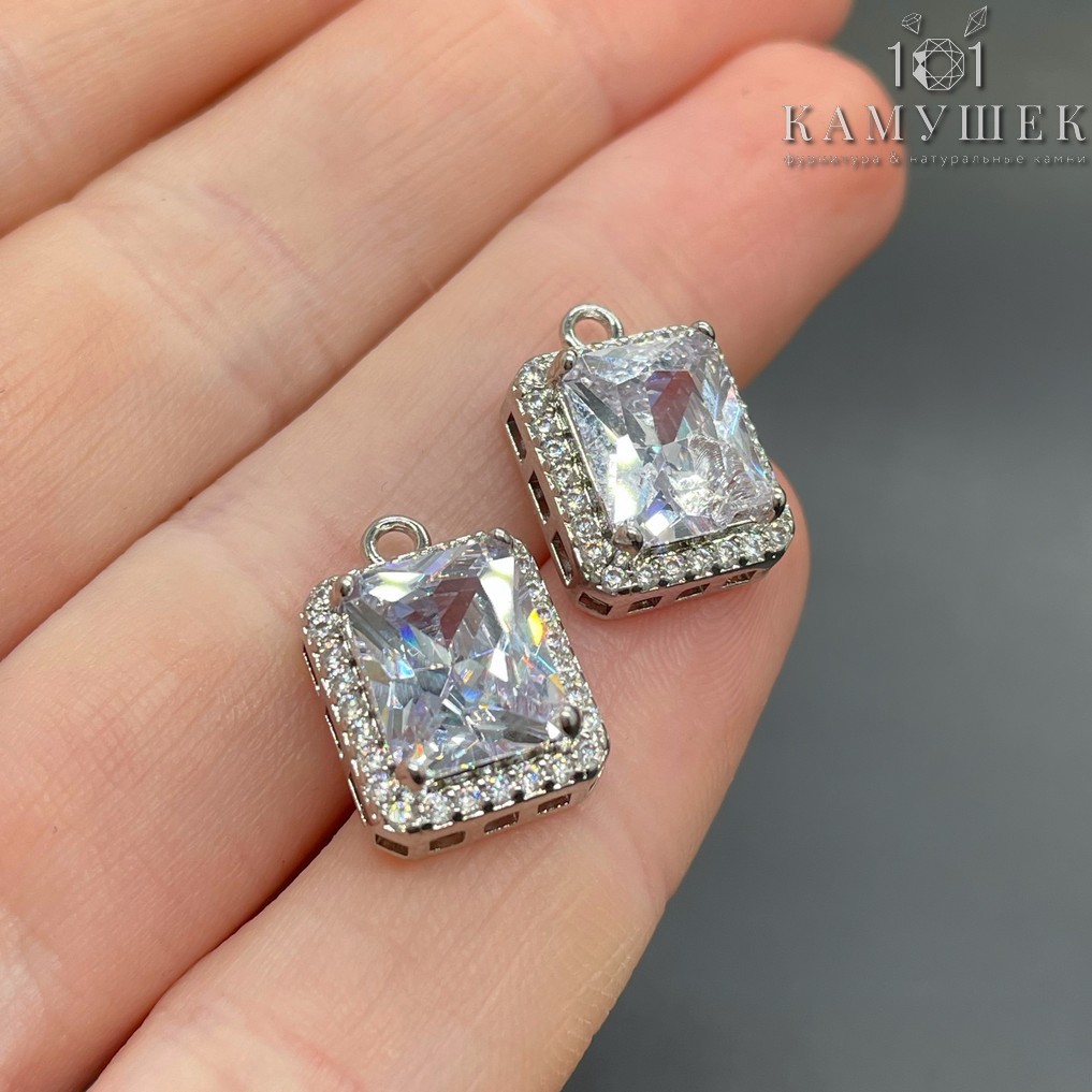 Подвеска прямоугольник цирконы, цвет серебро 11х16 мм