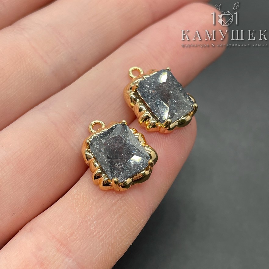 Подвеска фриформ прямоугольник сахарный черный циркон, цвет золото 12х16 мм