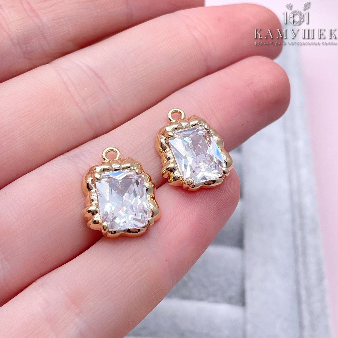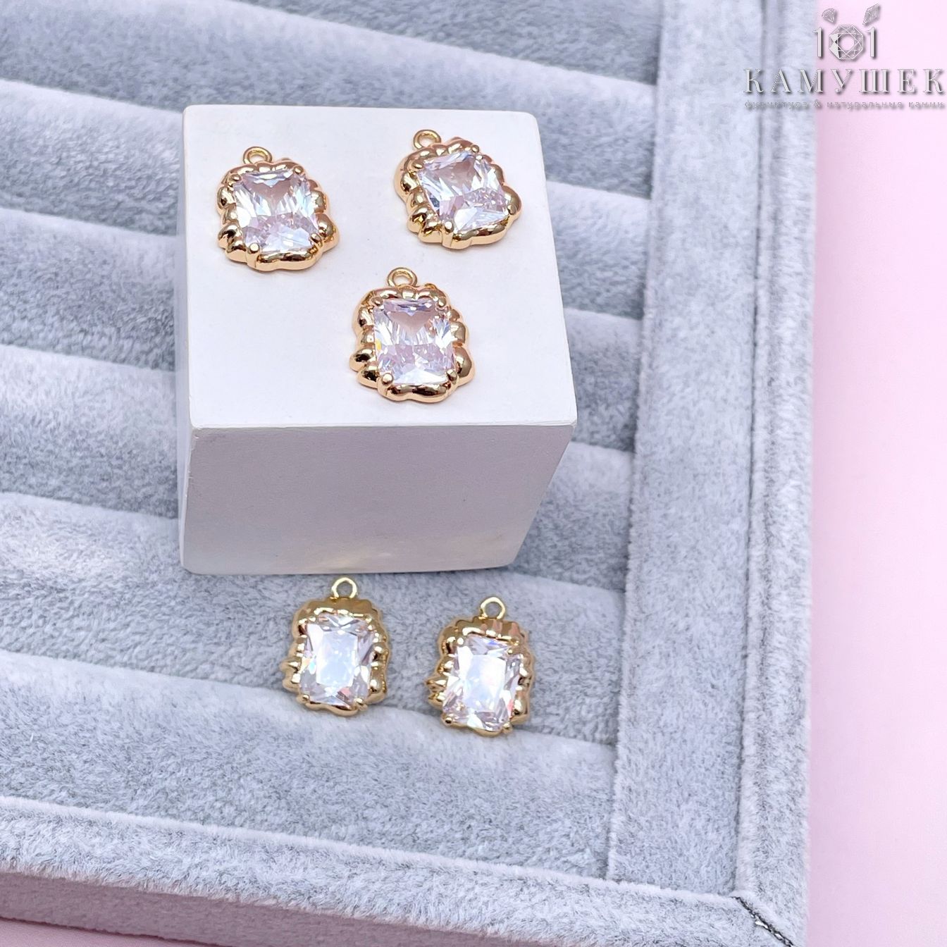 Подвеска фриформ прямоугольник циркон, цвет золото 12х16 мм