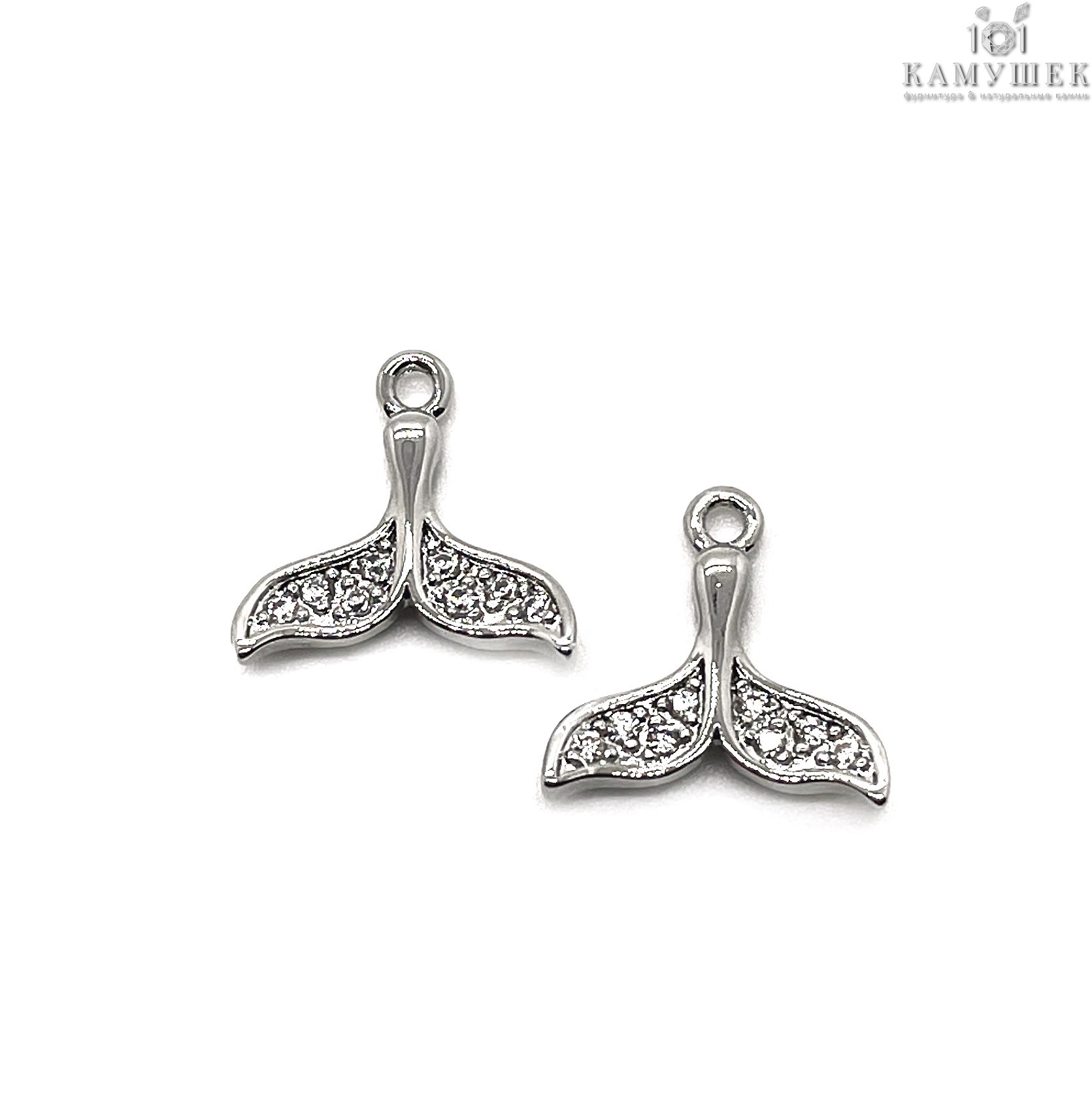 6мм Цвет серебро Подвеска Хвост Кита стразы