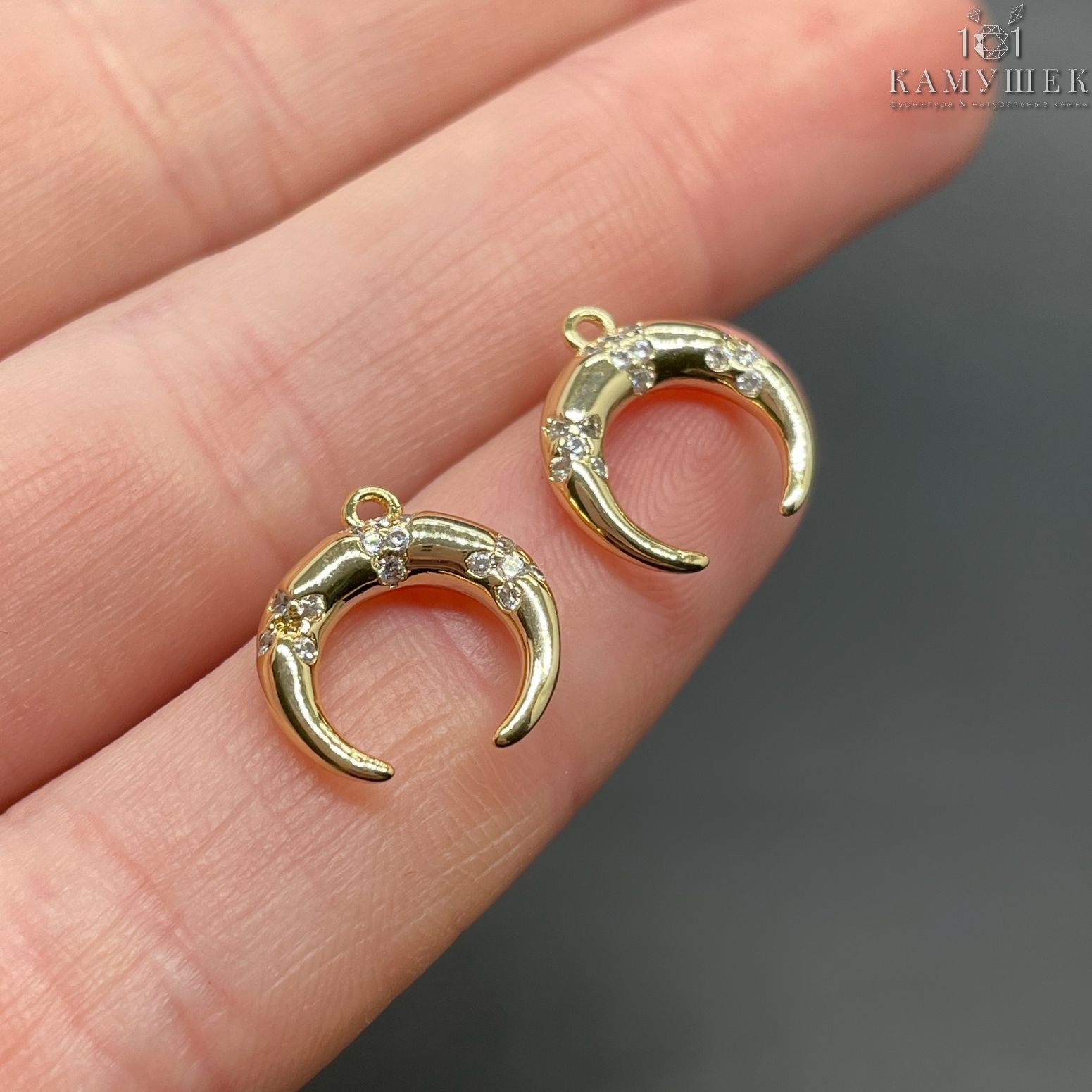 Подвеска лунница с цирконами, цвет золото 14х13 мм
