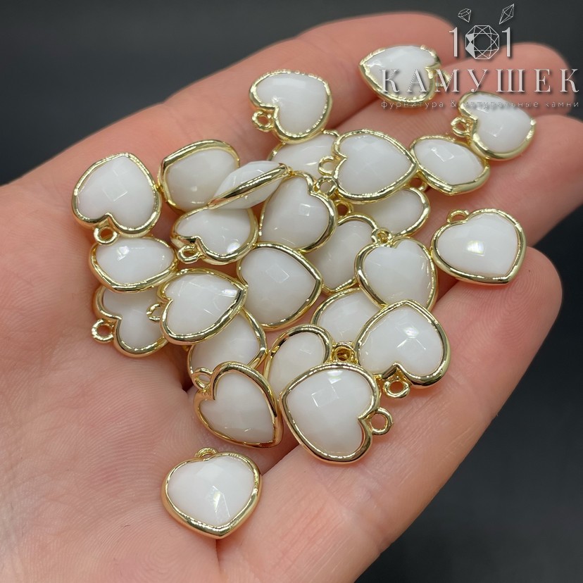 Подвеска сердце агат белый имитация огранка, цвет золото 12х13 мм