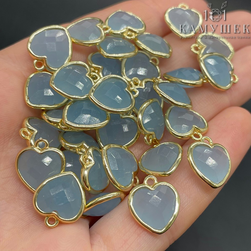 Подвеска сердце кварц голубой (тонированный) огранка, цвет золото 12х13 мм