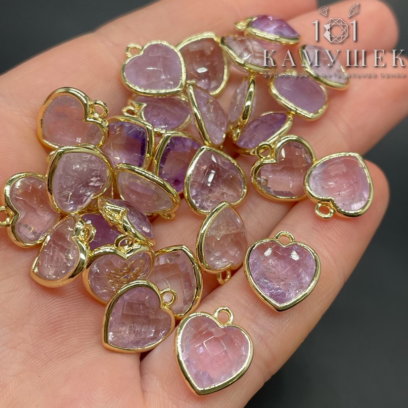 Подвеска сердце аметист лавандовый огранка, цвет золото 12х13 мм