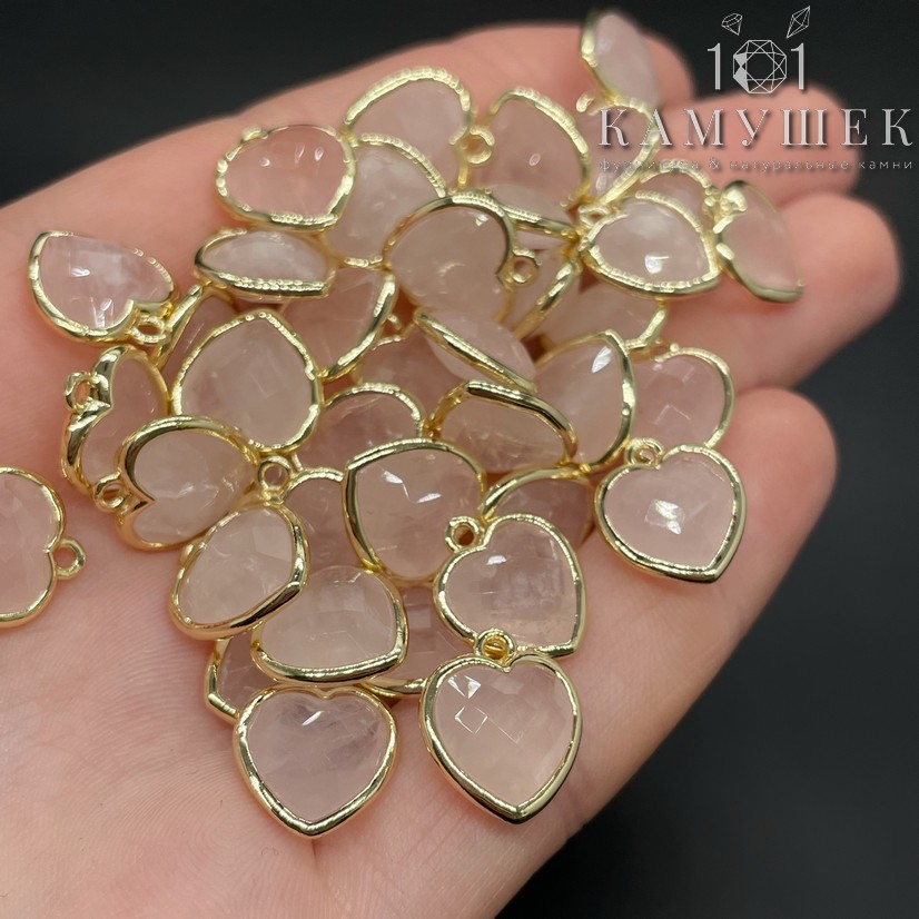 Подвеска сердце розовый кварц огранка, цвет золото 12х13 мм