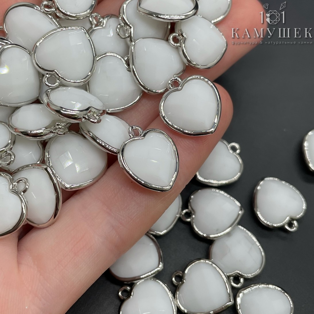 Подвеска сердце огранка агат белый имитация, цвет серебро 13х15