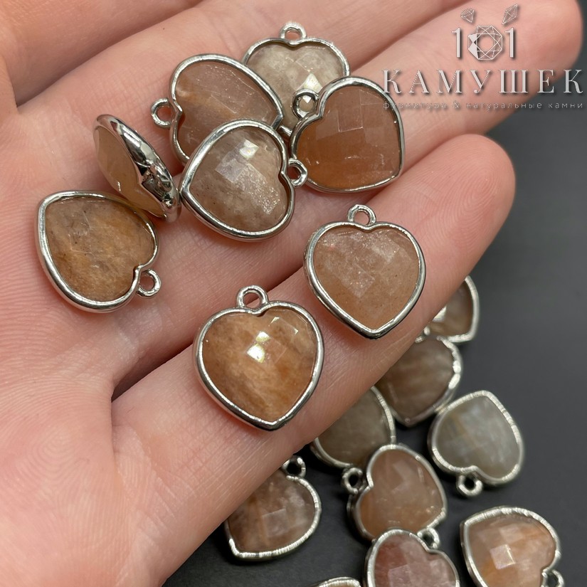 Подвеска сердце огранка солнечный камень, цвет серебро 13х15