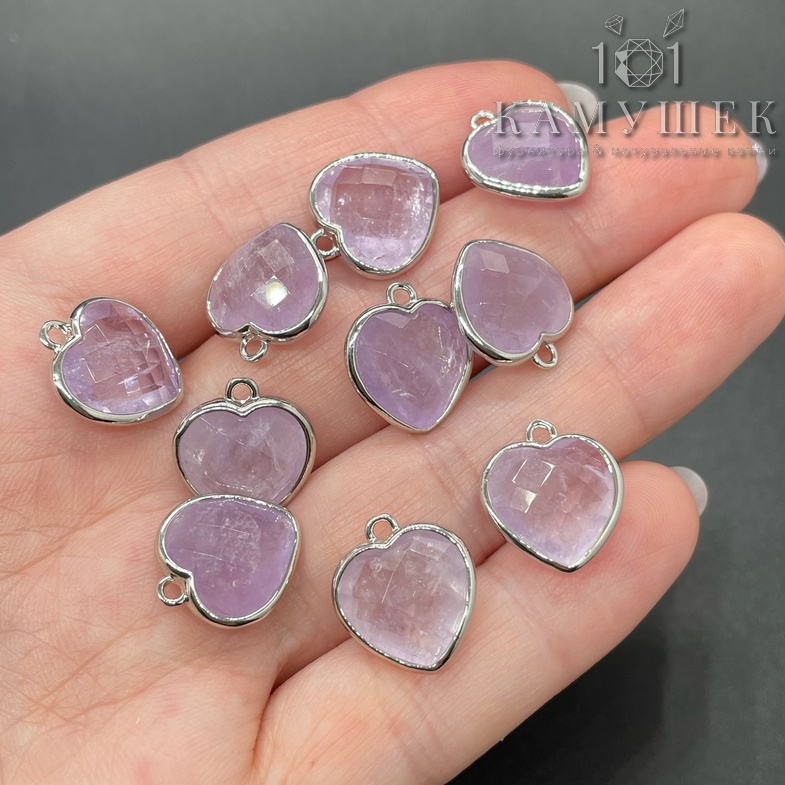 Подвеска сердце огранка аметист лавандовый, цвет серебро 13х15