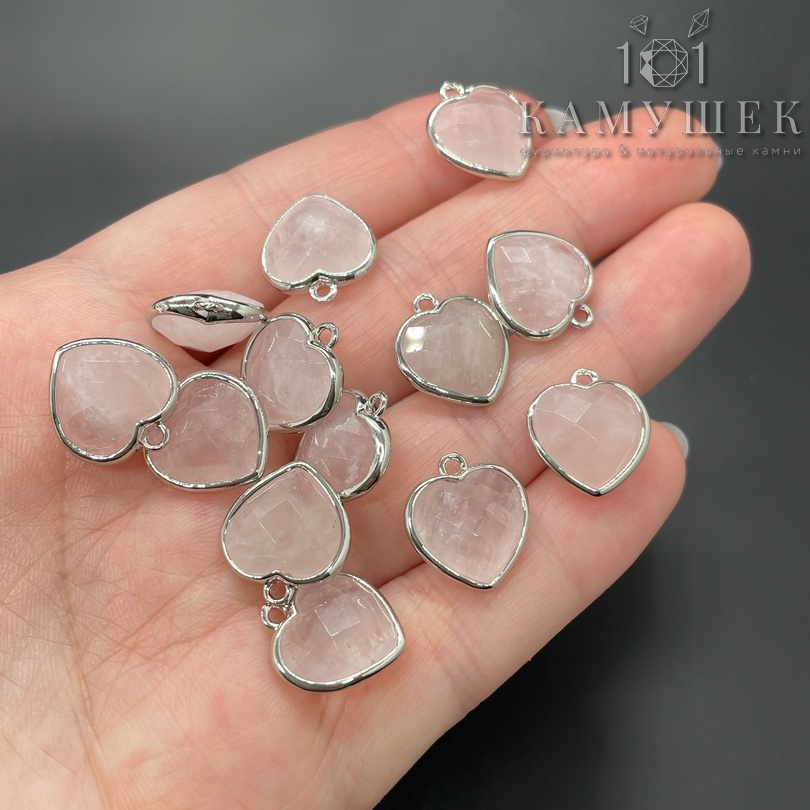 Подвеска сердце огранка розовый кварц, цвет серебро 13х15