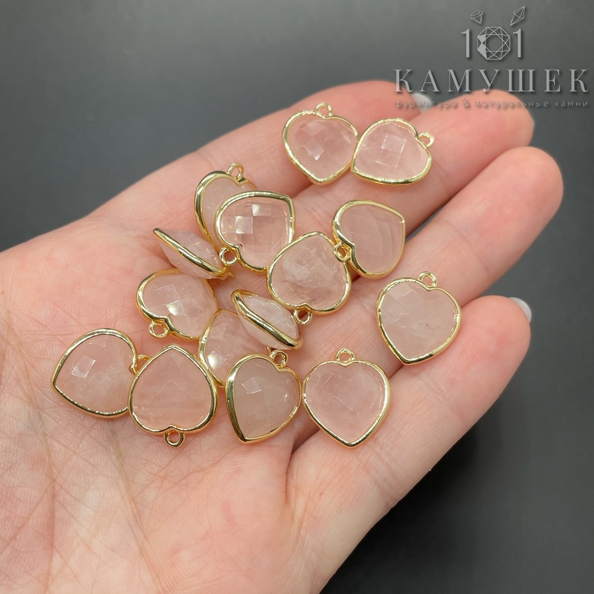 Подвеска сердце огранка розовый кварц, цвет золото 13х15