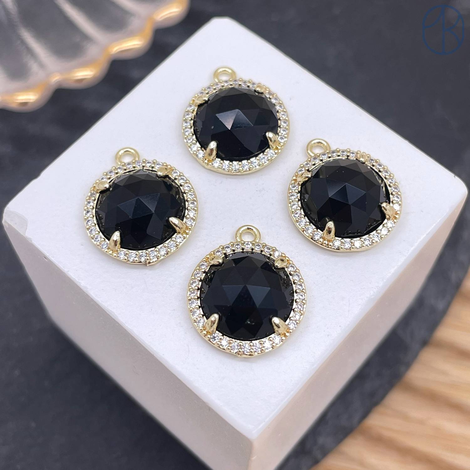 Подвеска круг огранка цирконы агат черный, цвет золото 13 мм