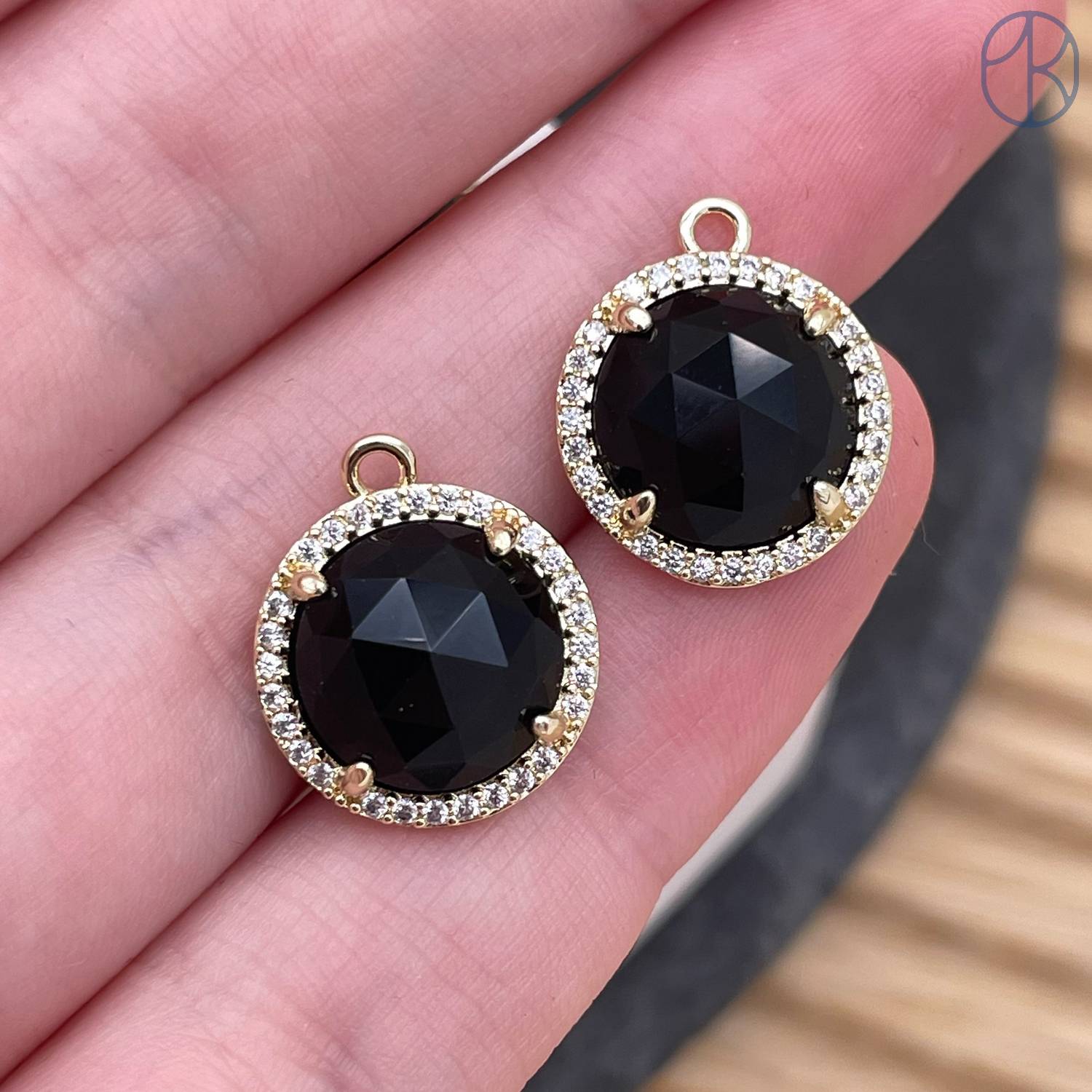 13 мм, цвет золото Подвеска круг агат черный огранка в обрамлении цирконы