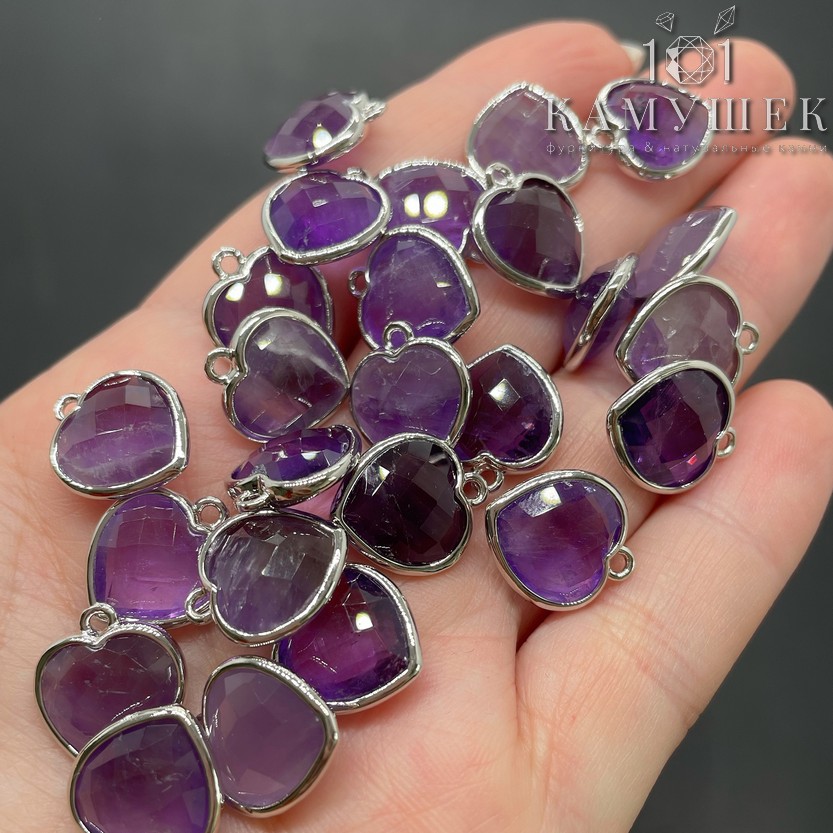 Подвеска сердце огранка аметист, цвет серебро 13х15
