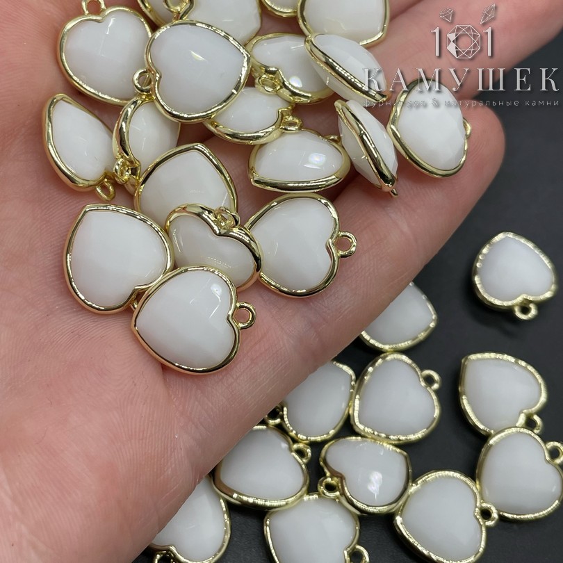 13*15мм, Цвет золото, Подвеска Сердце агат белый имитация огранка
