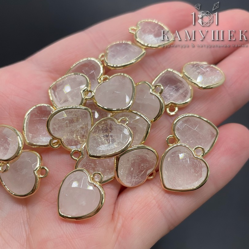 13*15мм, Цвет золото, Подвеска Сердце горный хрусталь огранка