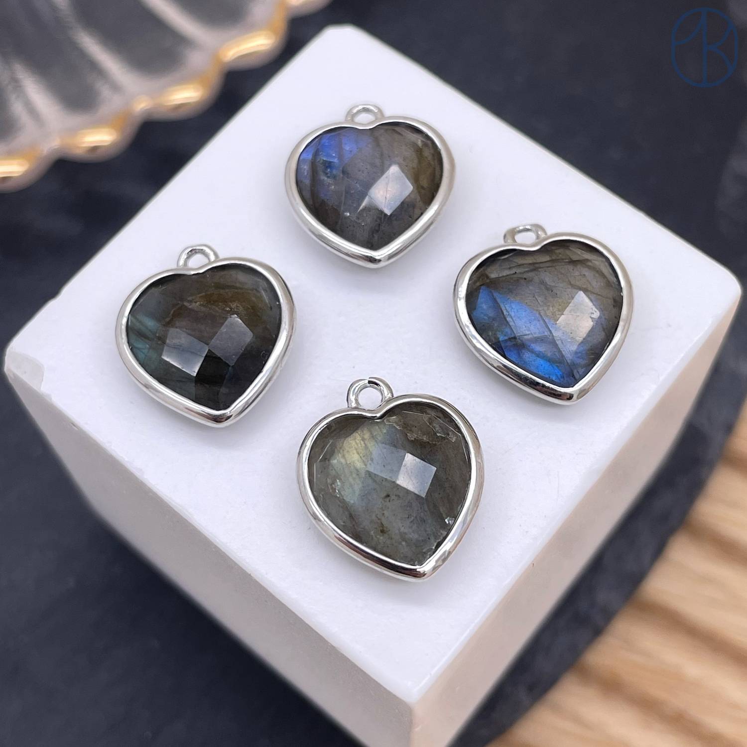 Подвеска сердце огранка лабрадор, цвет серебро 13х15