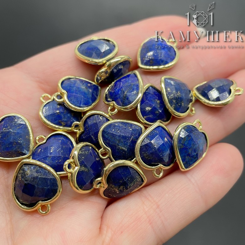 Подвеска сердце огранка лазурит, цвет золото 13х15