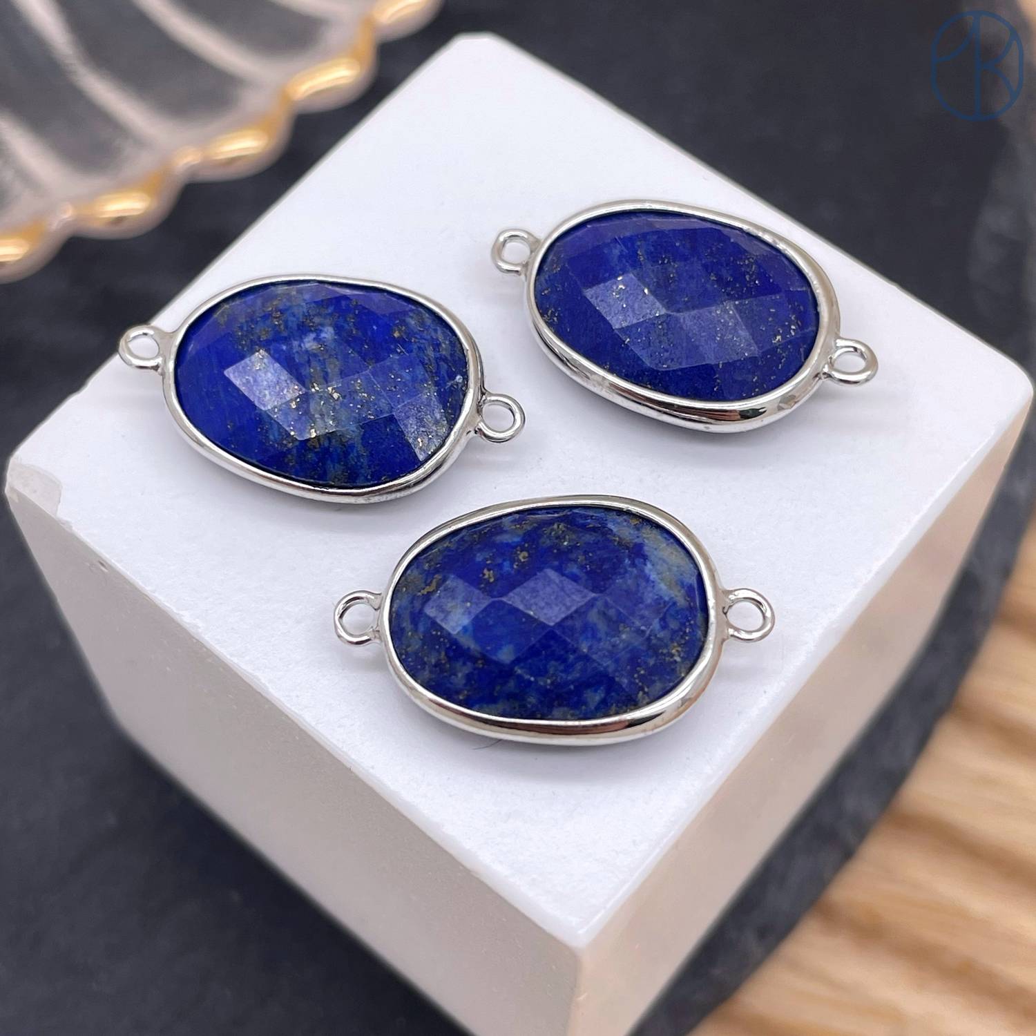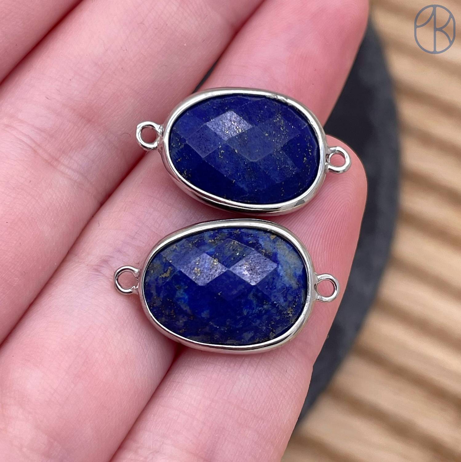Коннектор овал огранка лазурит, цвет серебро ~ 16 мм