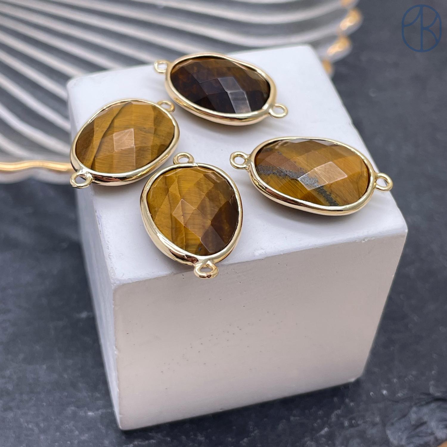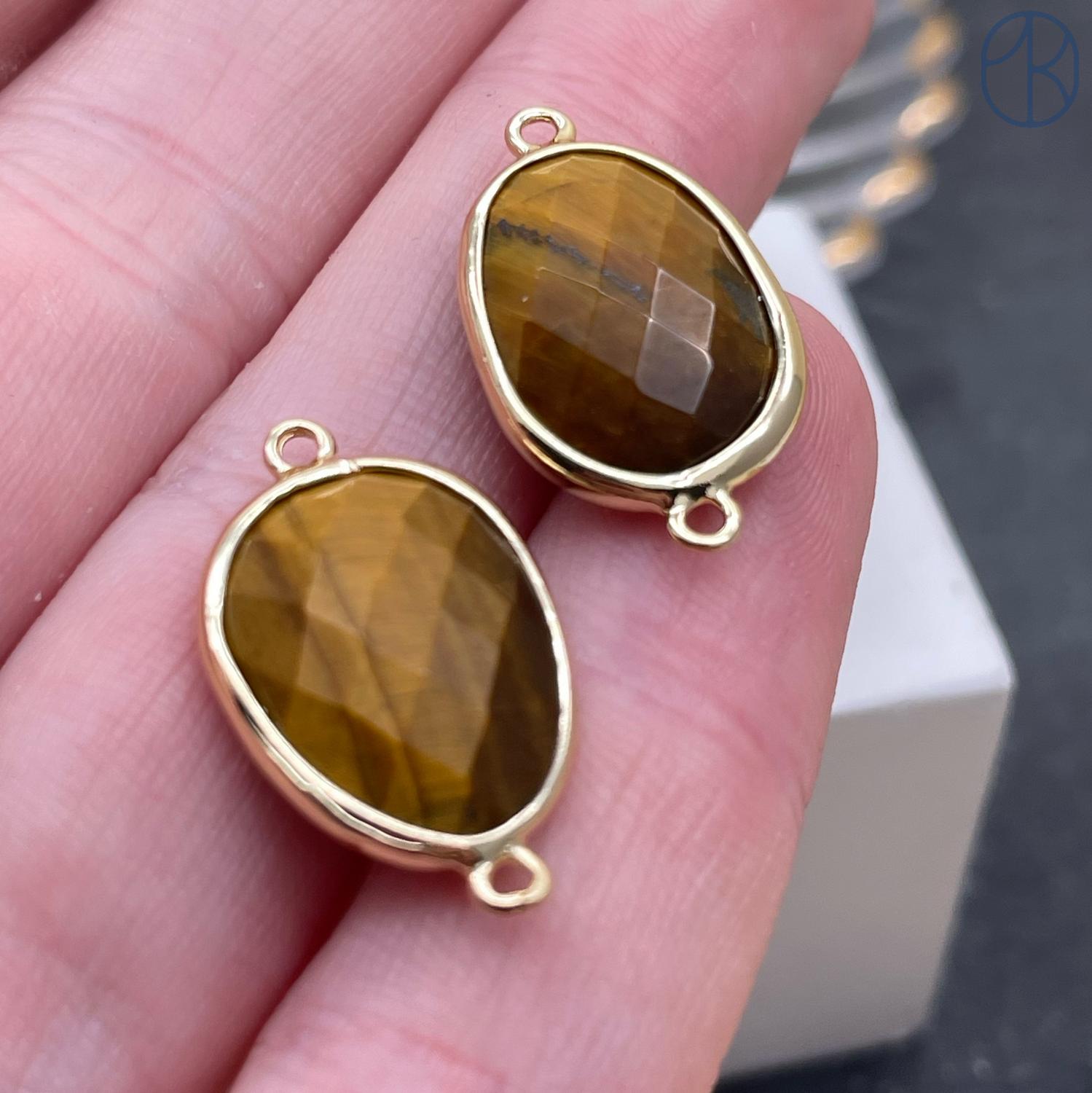 Коннектор Тигровый глаз, цвет золото 13х17 мм