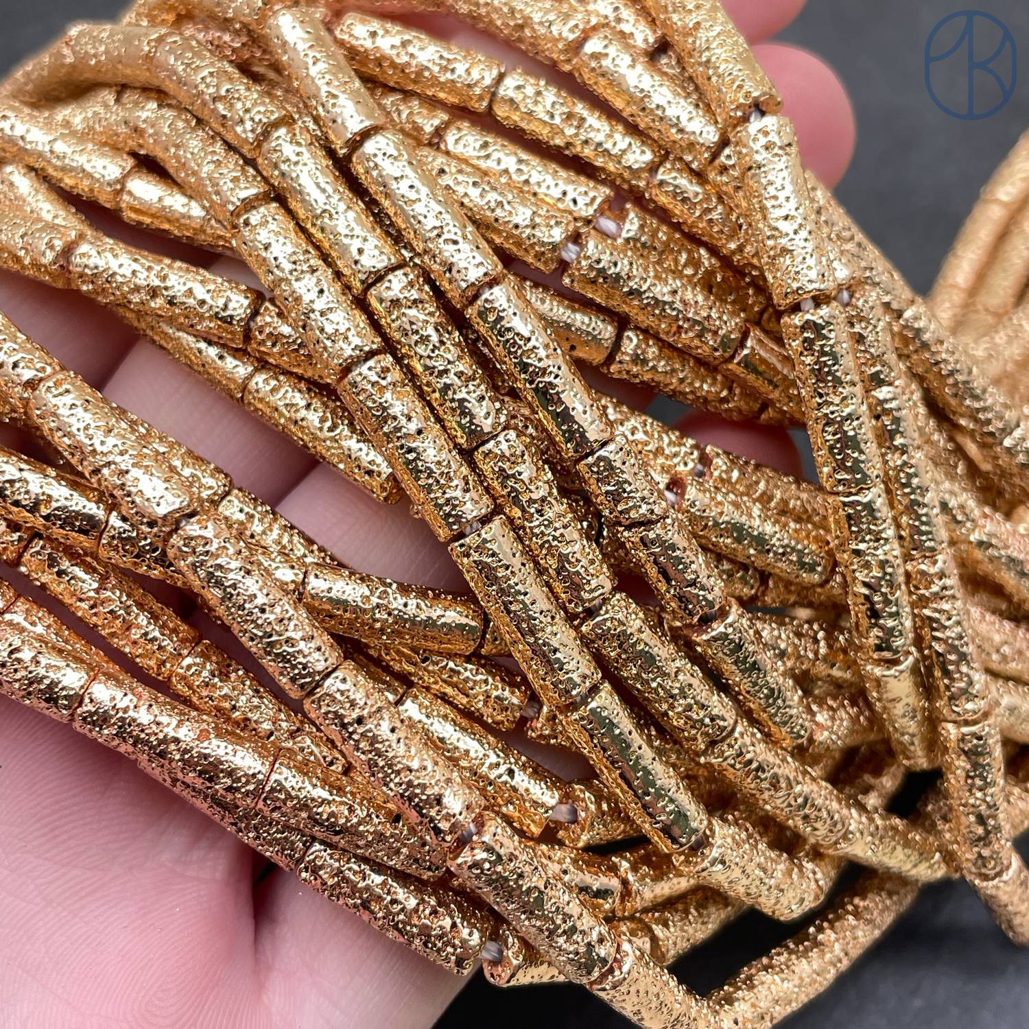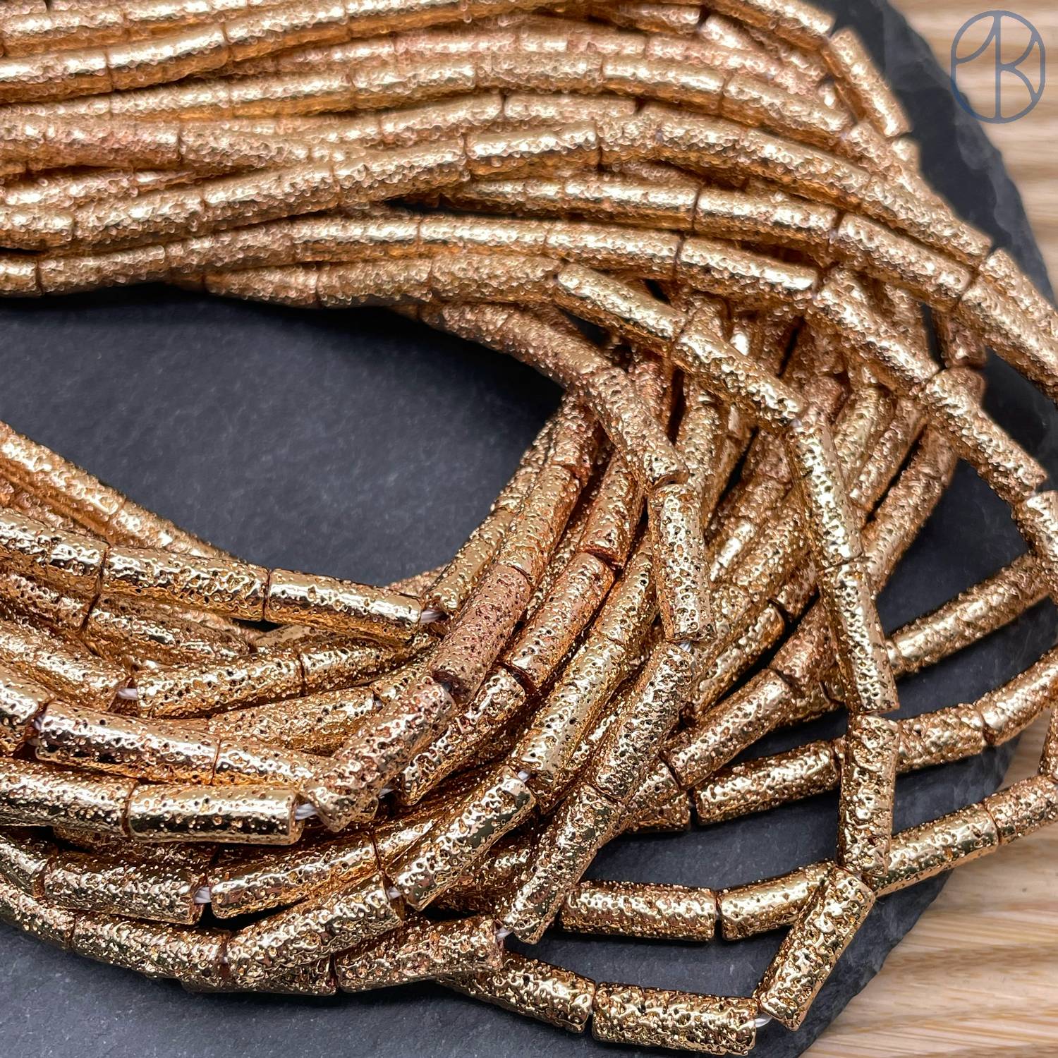 13х4 мм, Лава Вулканическая трубочки темное золото