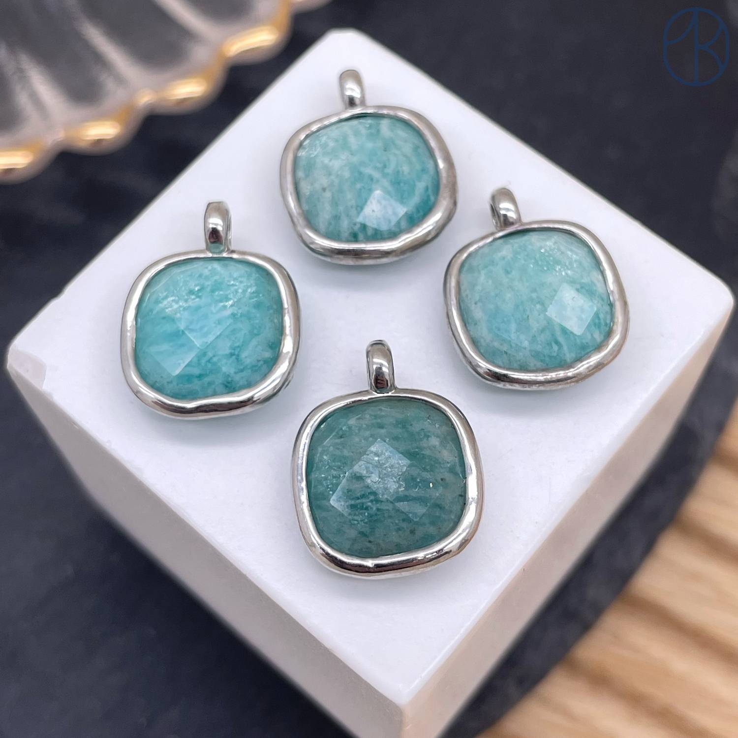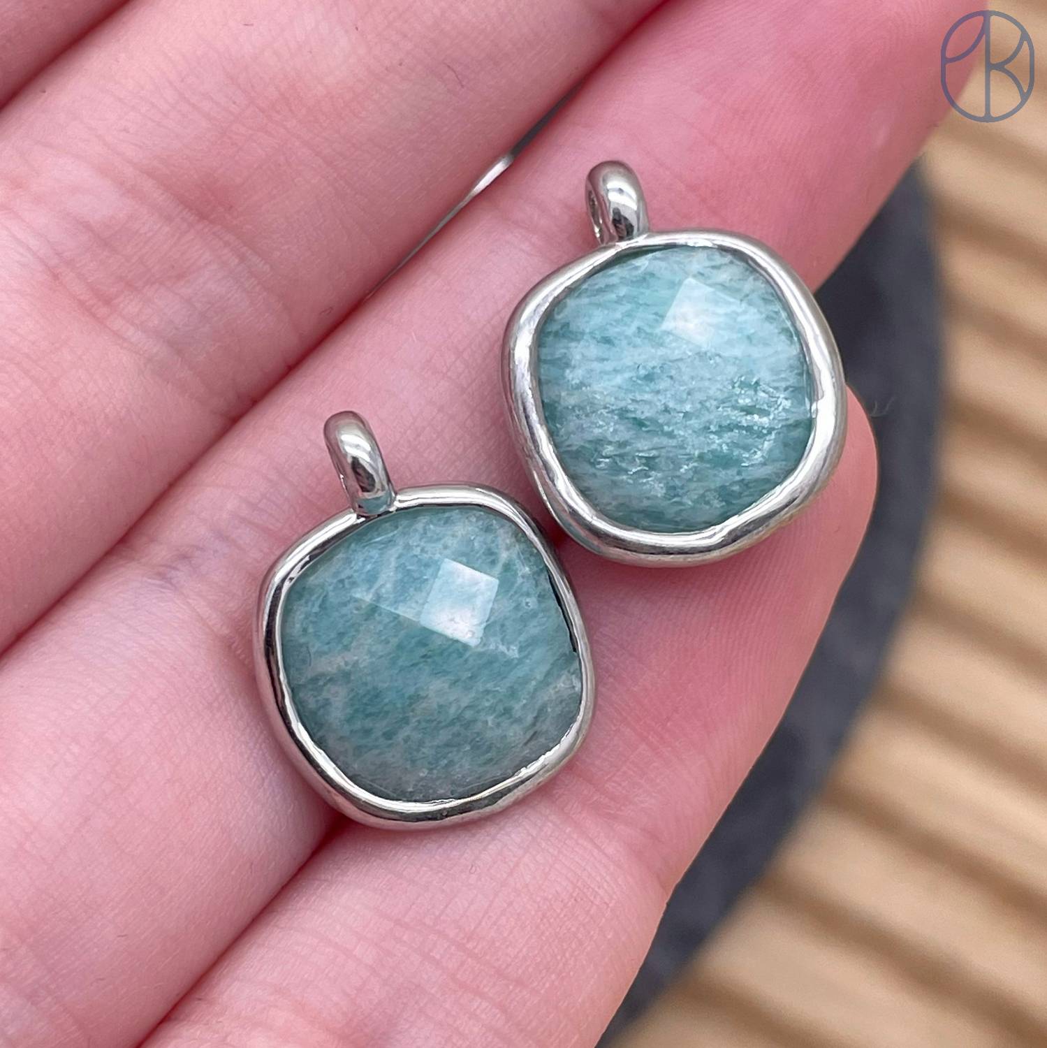 Подвеска квадрат амазонит, цвет серебро 14 мм
