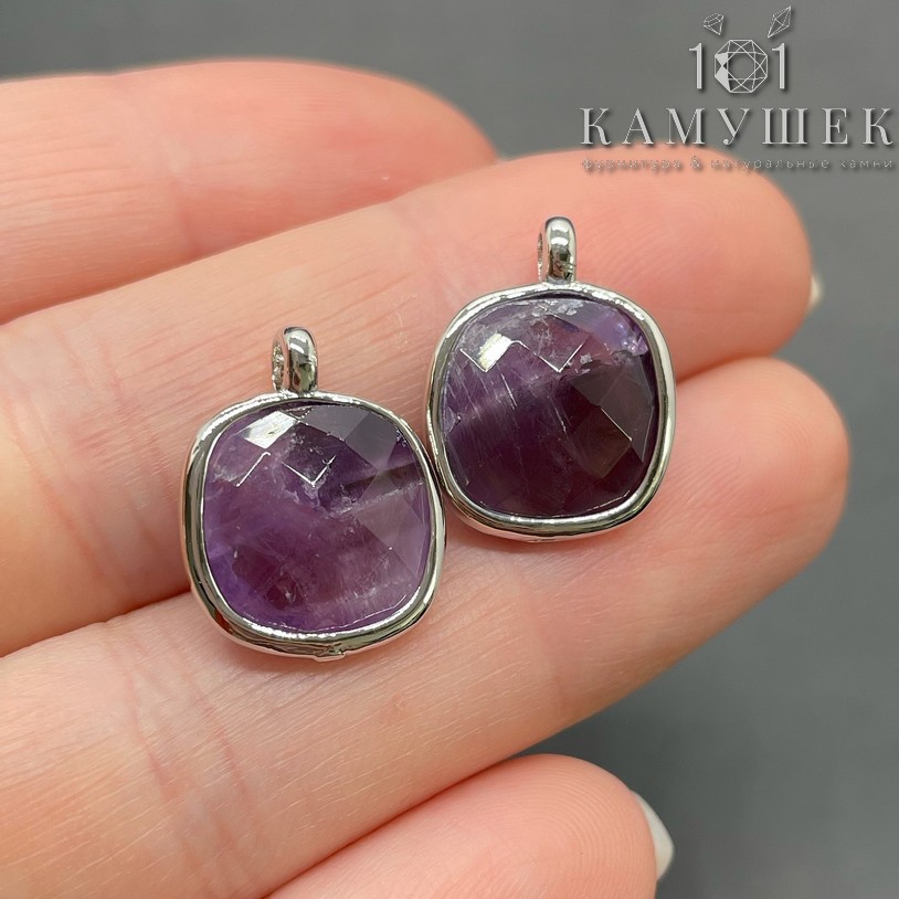 Подвеска квадрат аметист, цвет серебро 14 мм