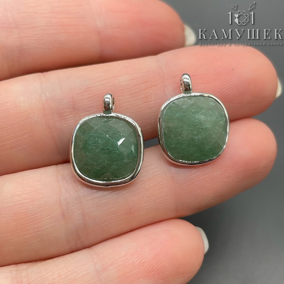 Подвеска квадрат авантюрин зеленый, цвет серебро 14 мм
