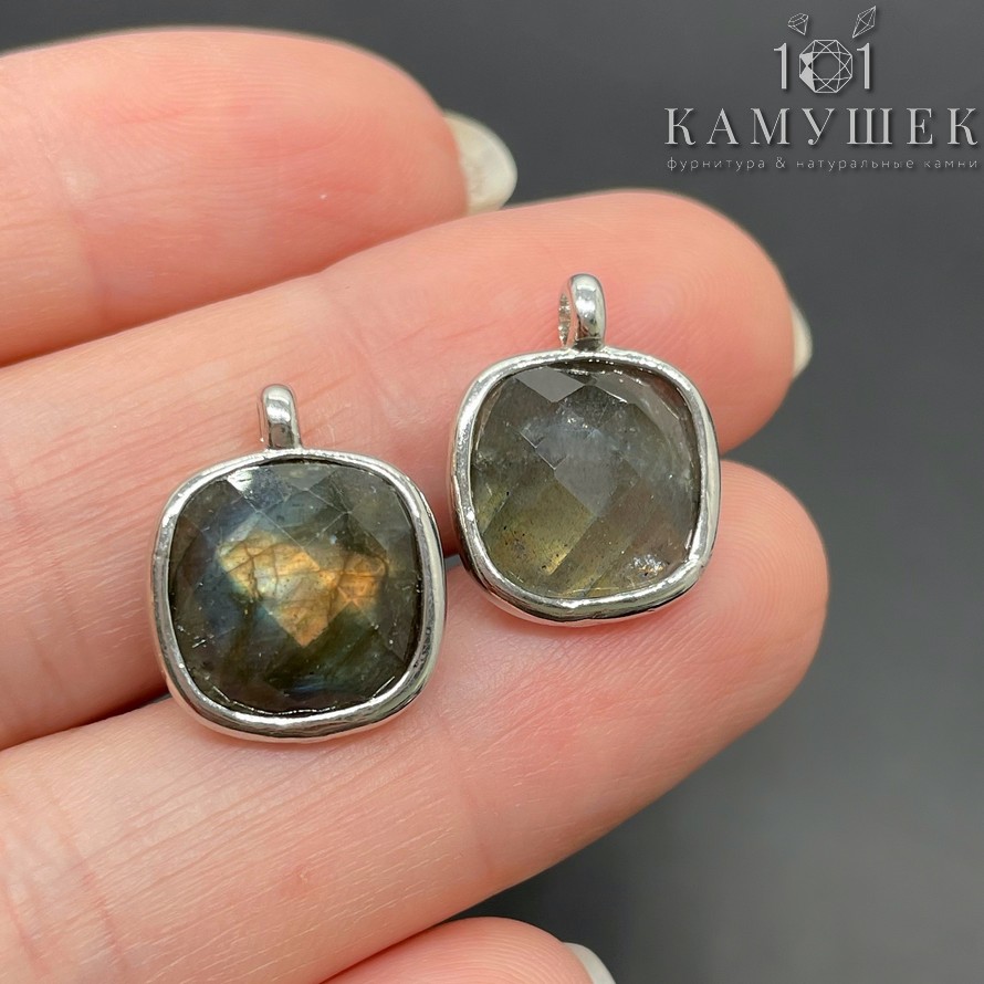 Подвеска квадрат лабрадор, цвет серебро 14 мм