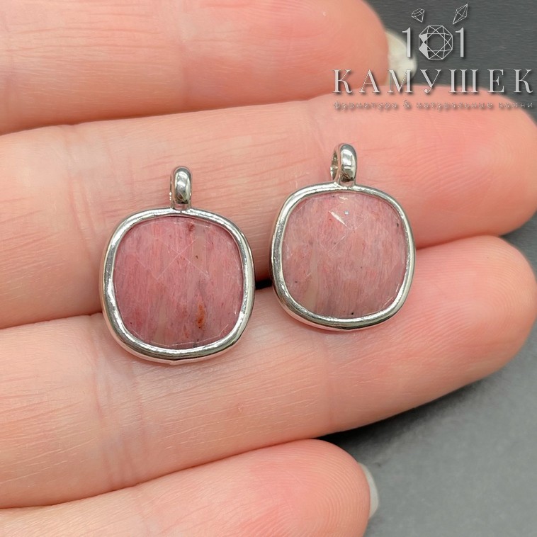 Подвеска квадрат родонит, цвет серебро 14 мм