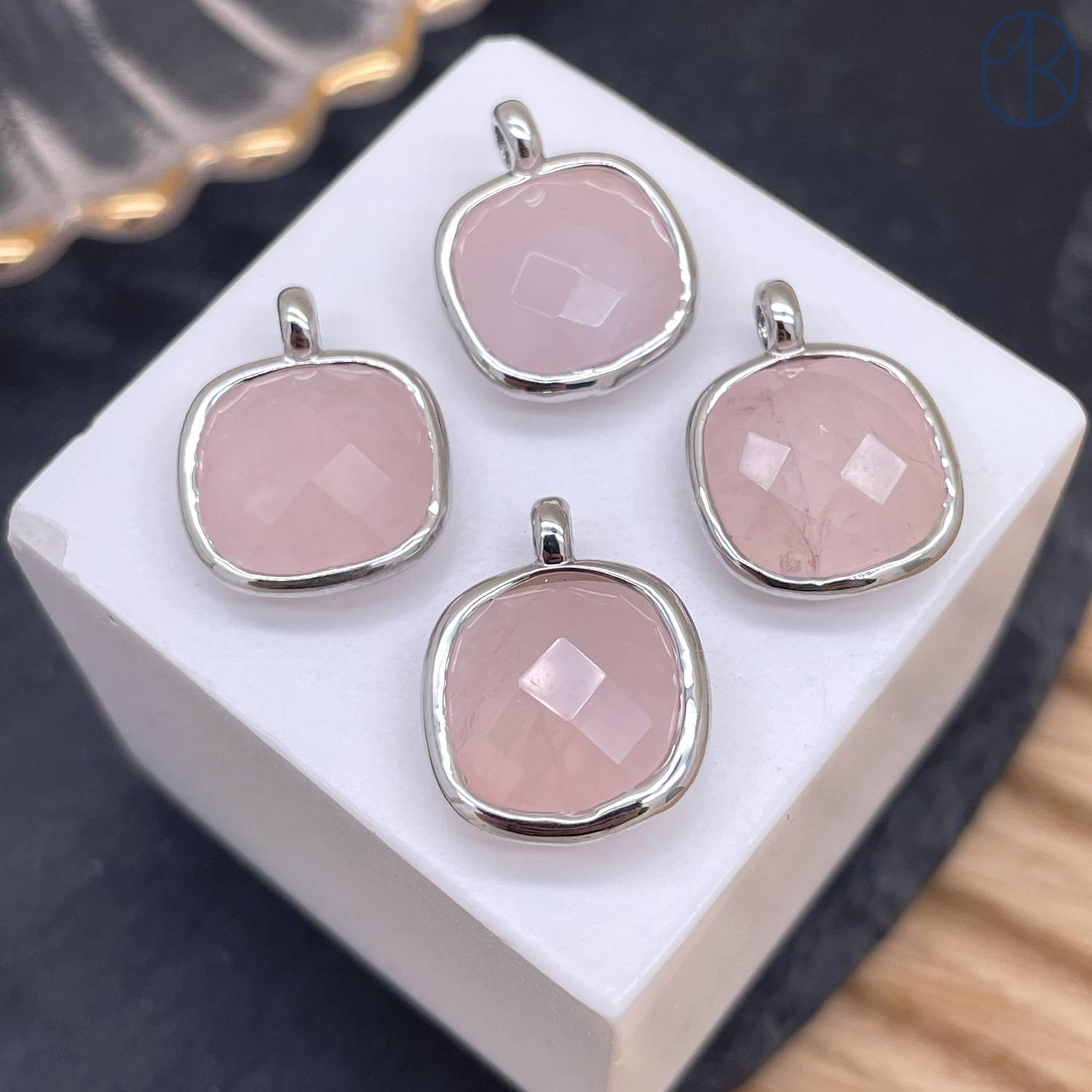 Подвеска квадрат розовый кварц, цвет серебро 14 мм
