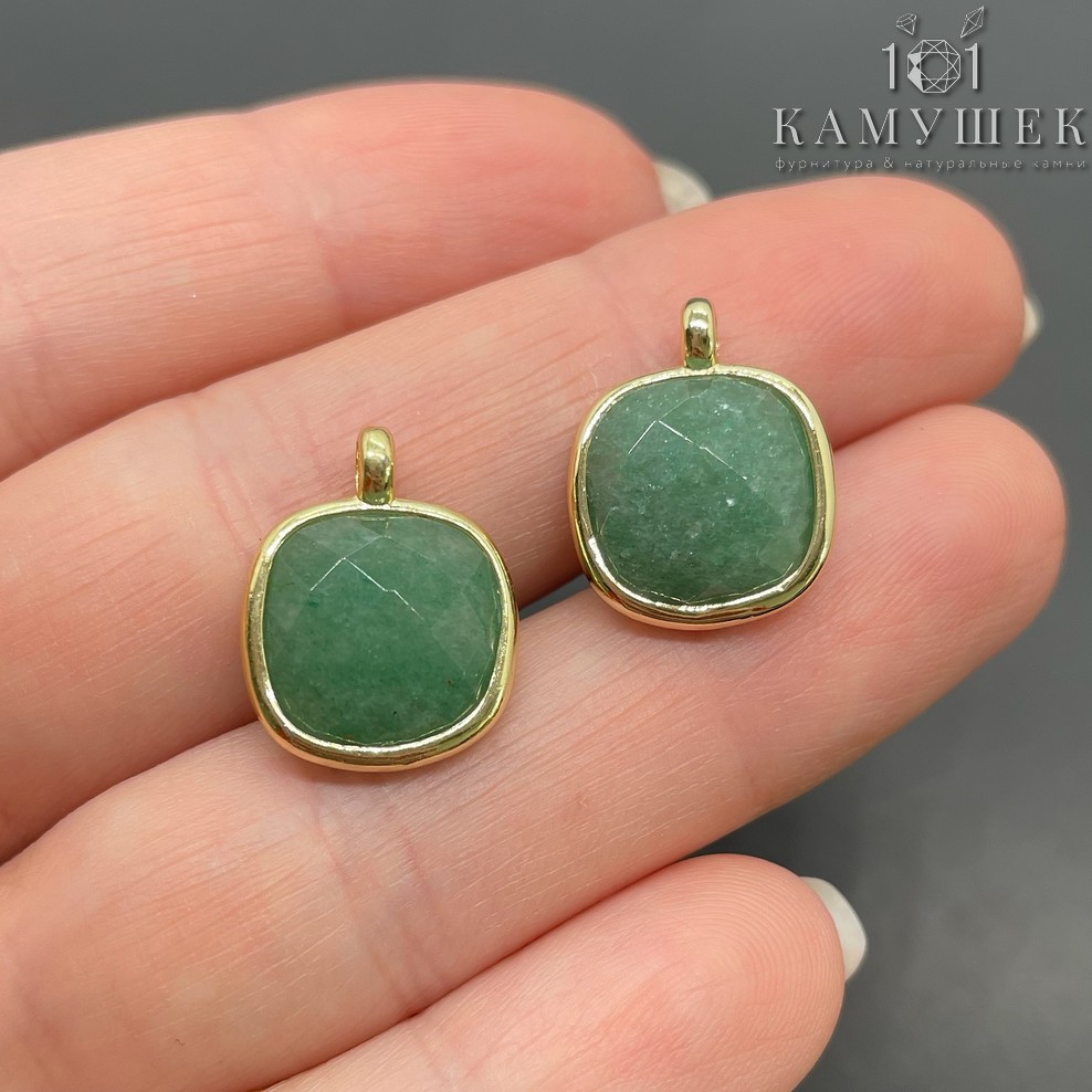 Подвеска квадрат авантюрин зеленый, цвет золото 14 мм
