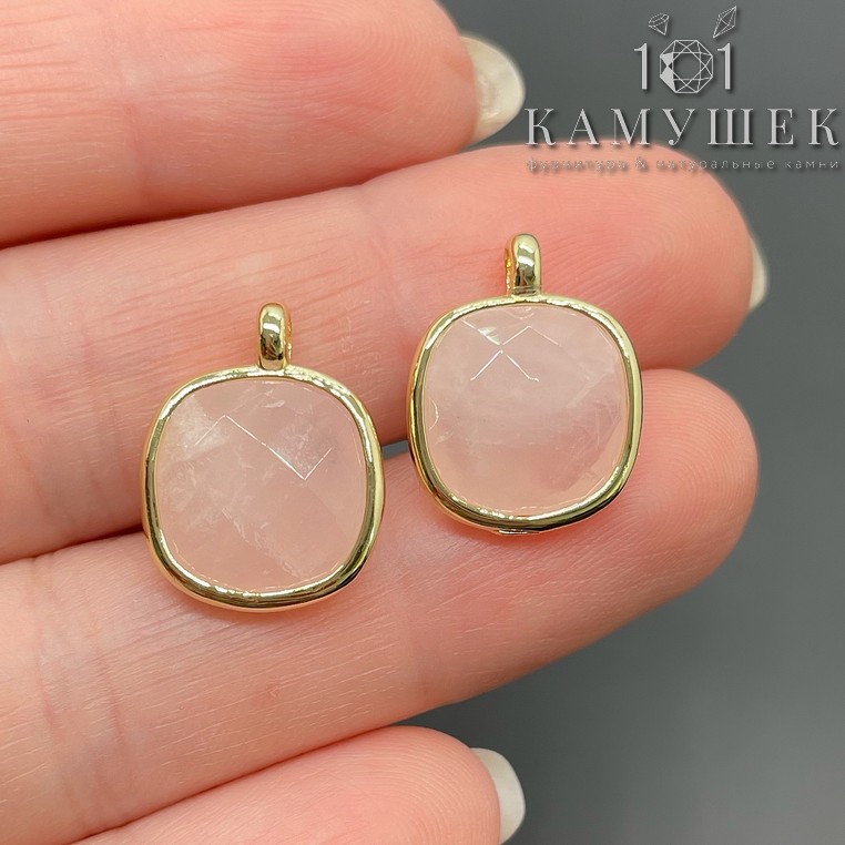 Подвеска квадрат розовый кварц, цвет золото 14 мм