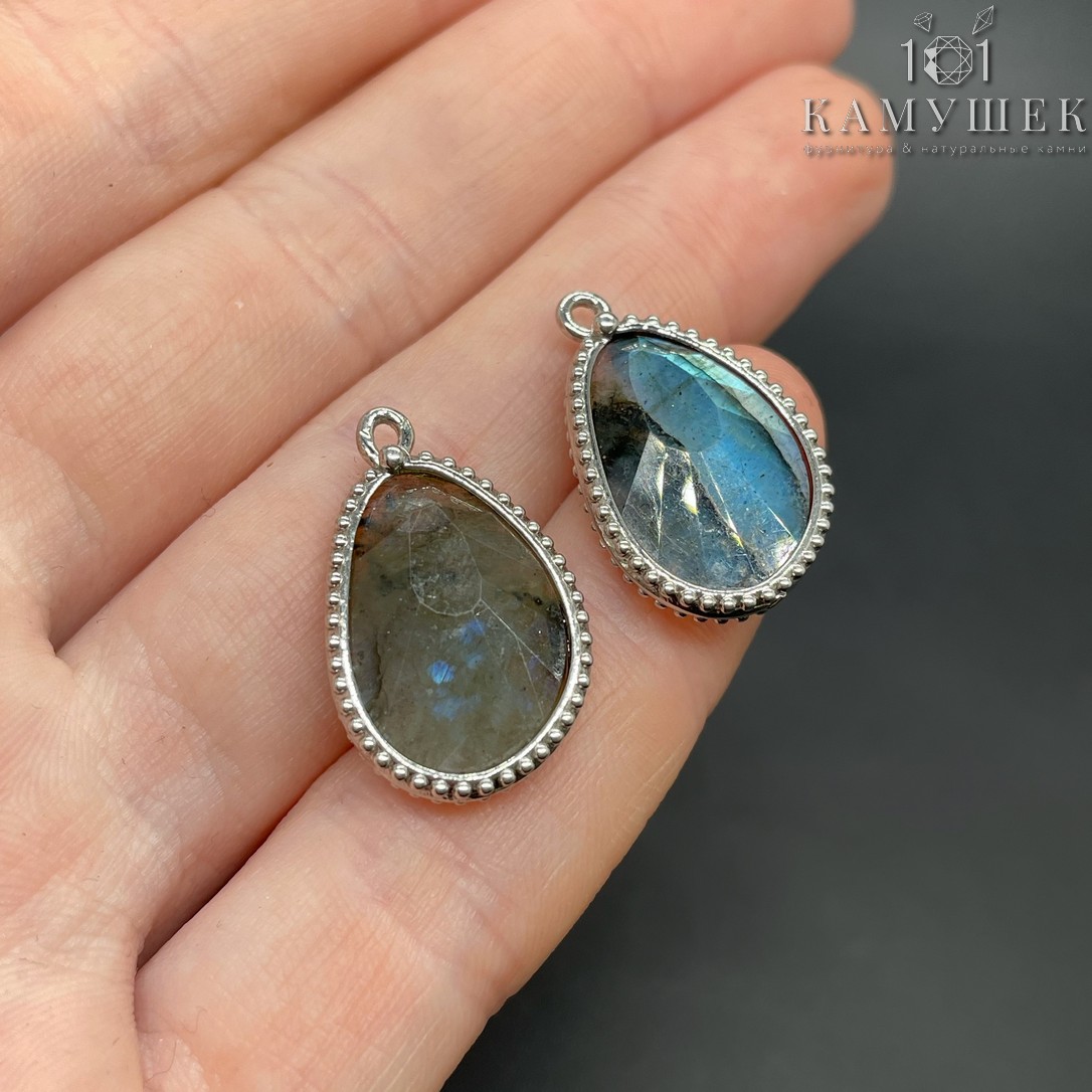 Подвеска капля лабрадор, цвет серебро 23 мм
