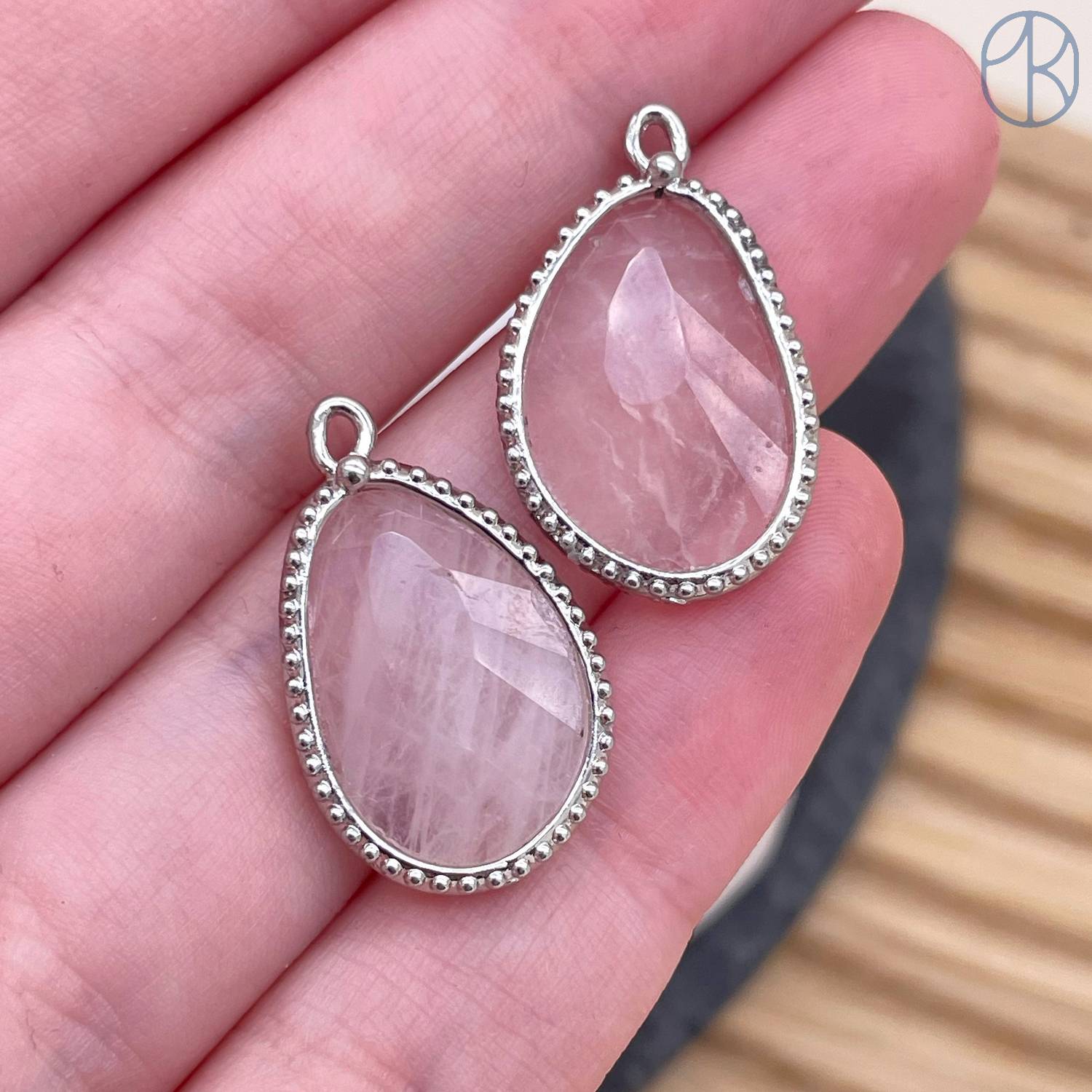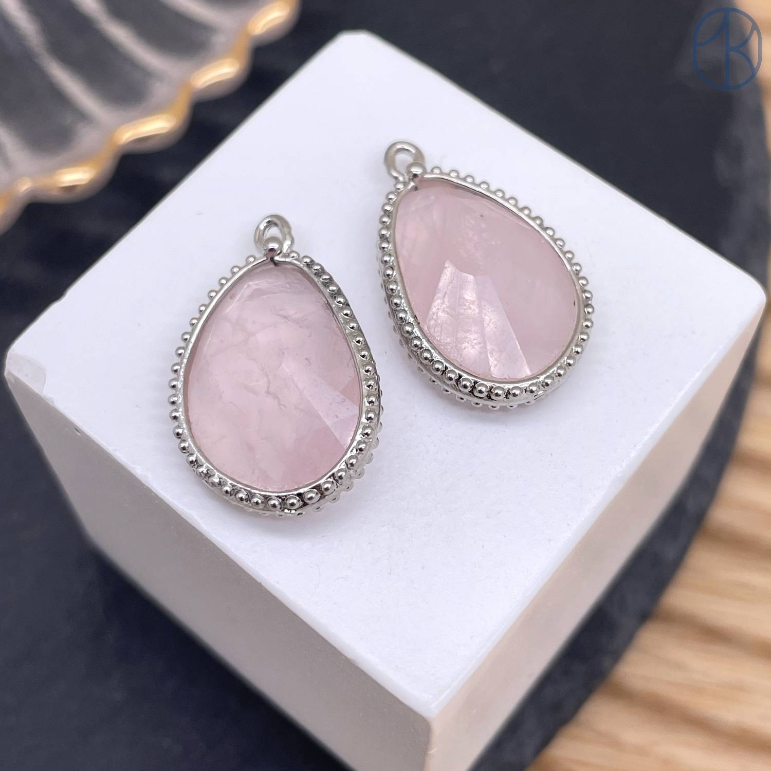 Подвеска капля розовый кварц, цвет серебро 23 мм