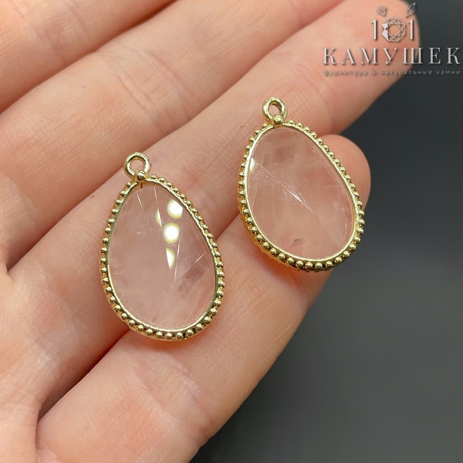 Подвеска капля розовый кварц, цвет золото 23 мм