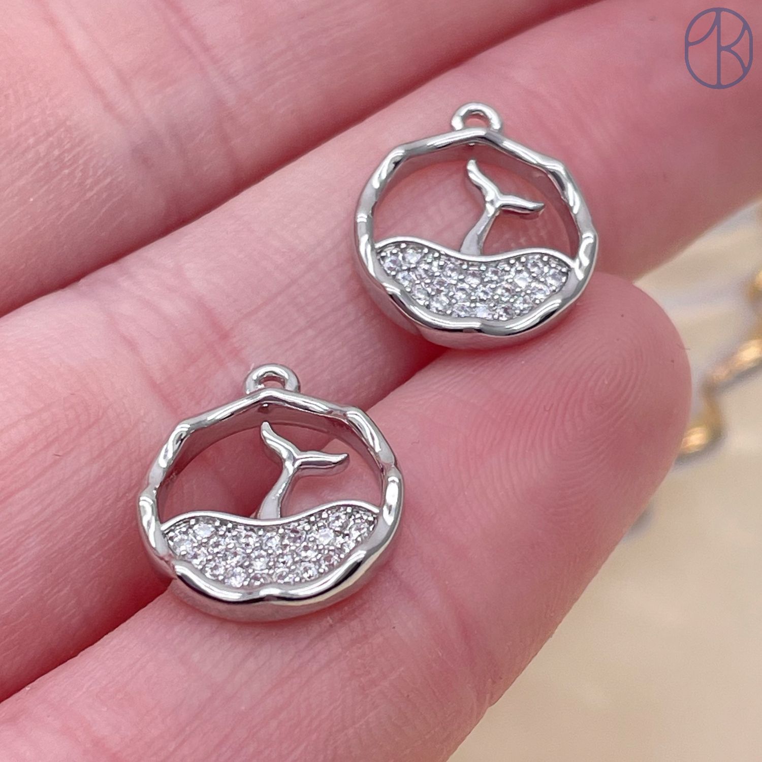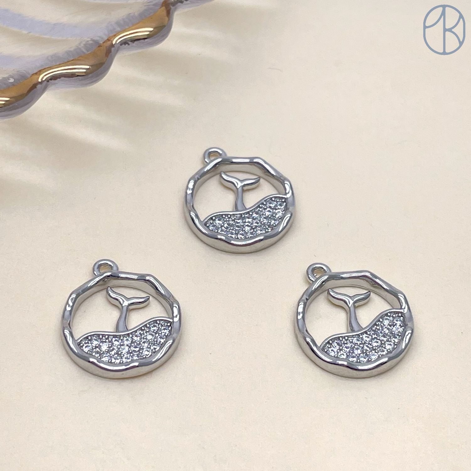 Подвеска кит в океане цирконы, цвет серебро 14 мм