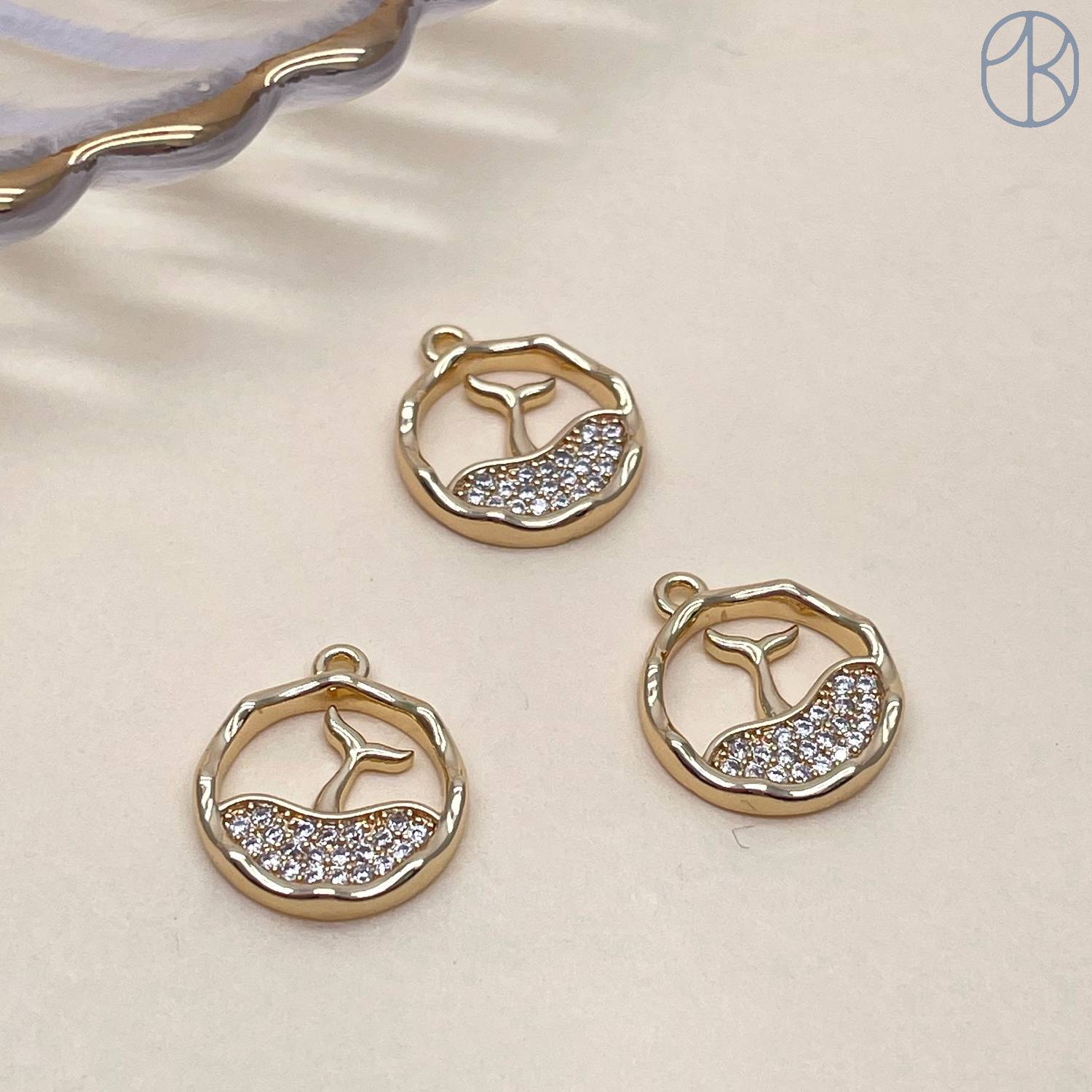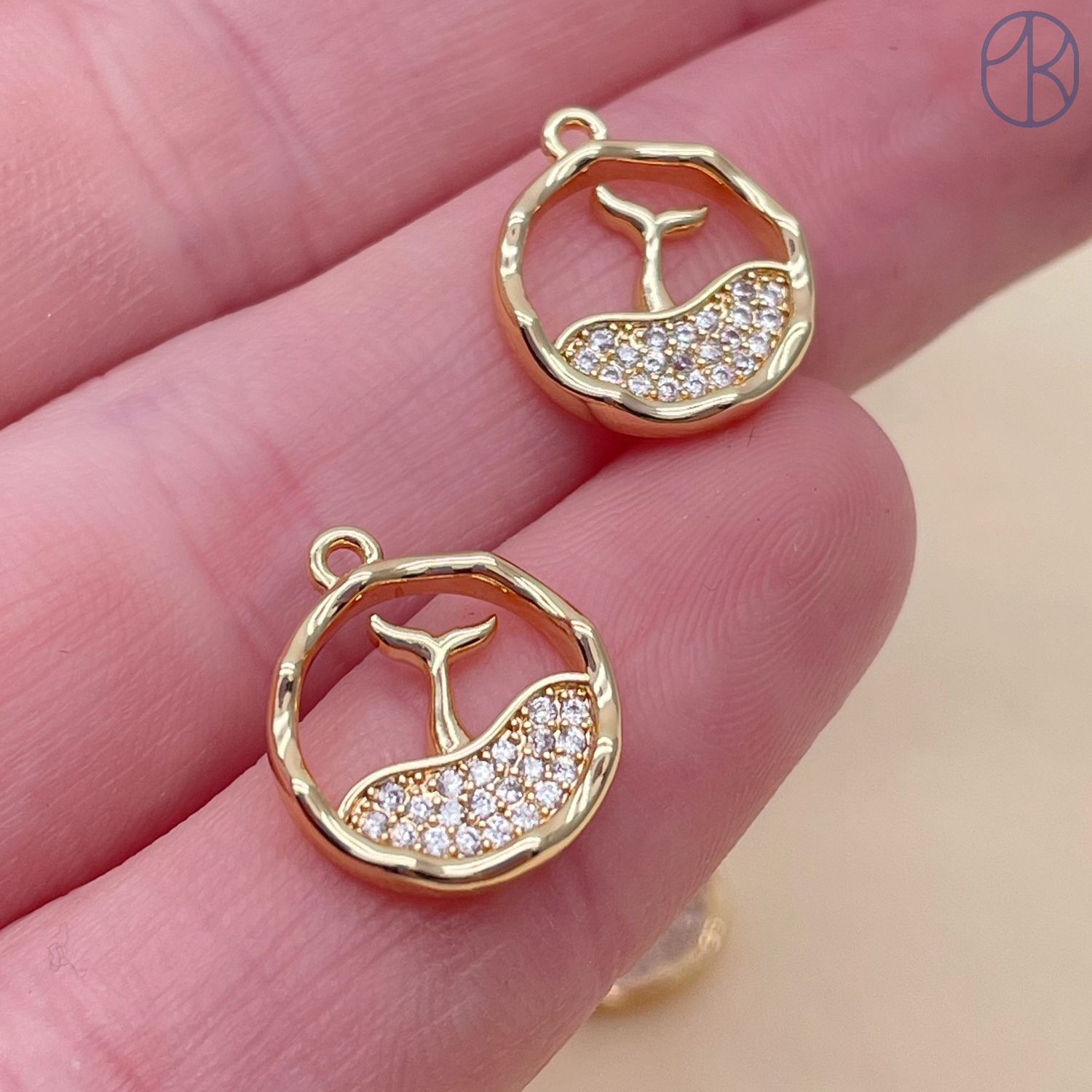 Подвеска кит в океане цирконы, цвет золото 14 мм