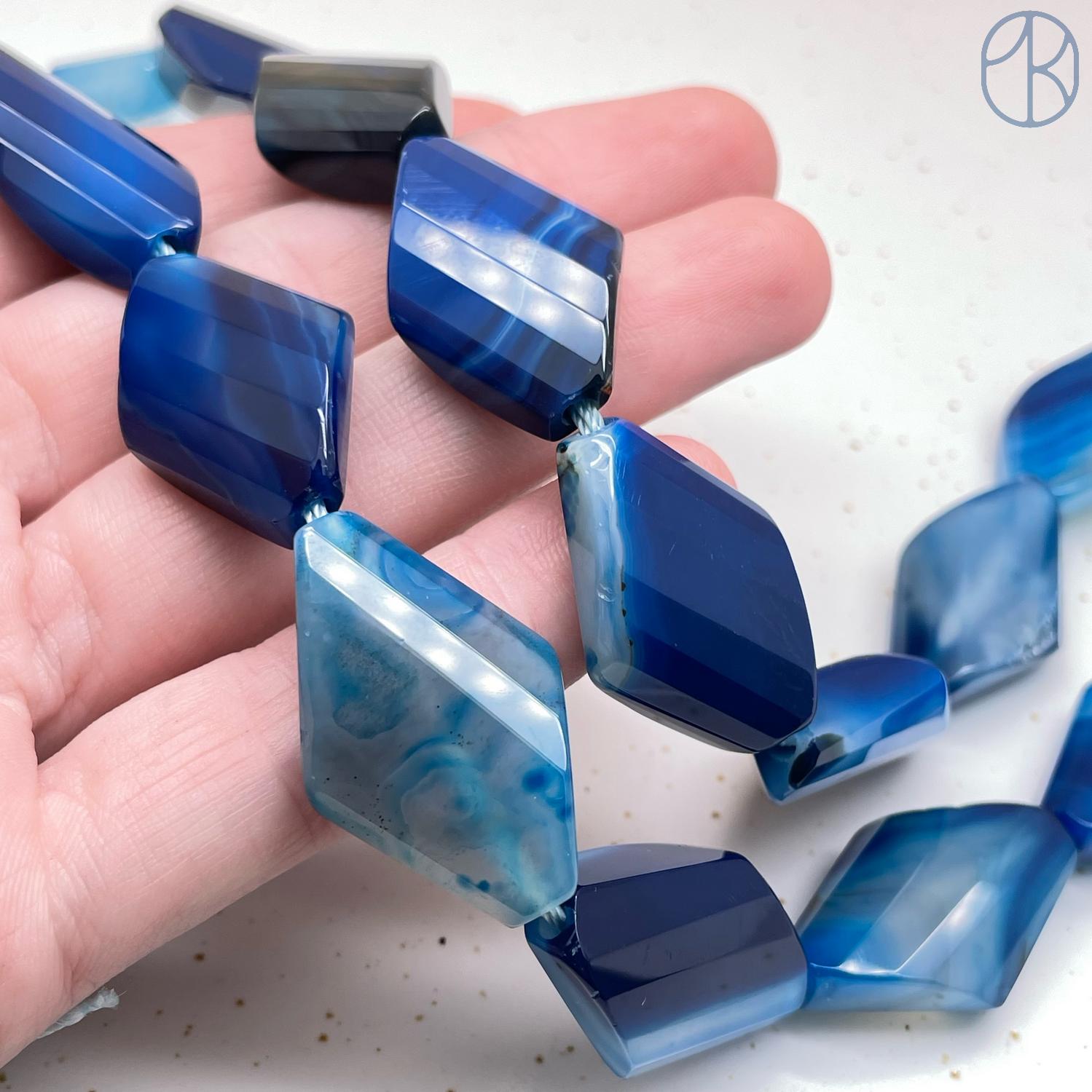 Агат синий тонированный галтовка ~ 21х14 мм
