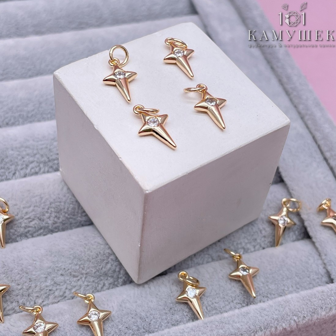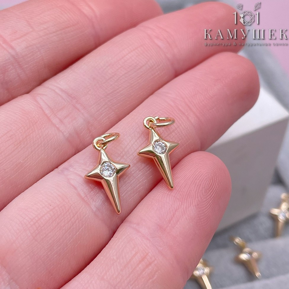 Подвеска северная звезда с цирконом, цвет золото 14х8 мм