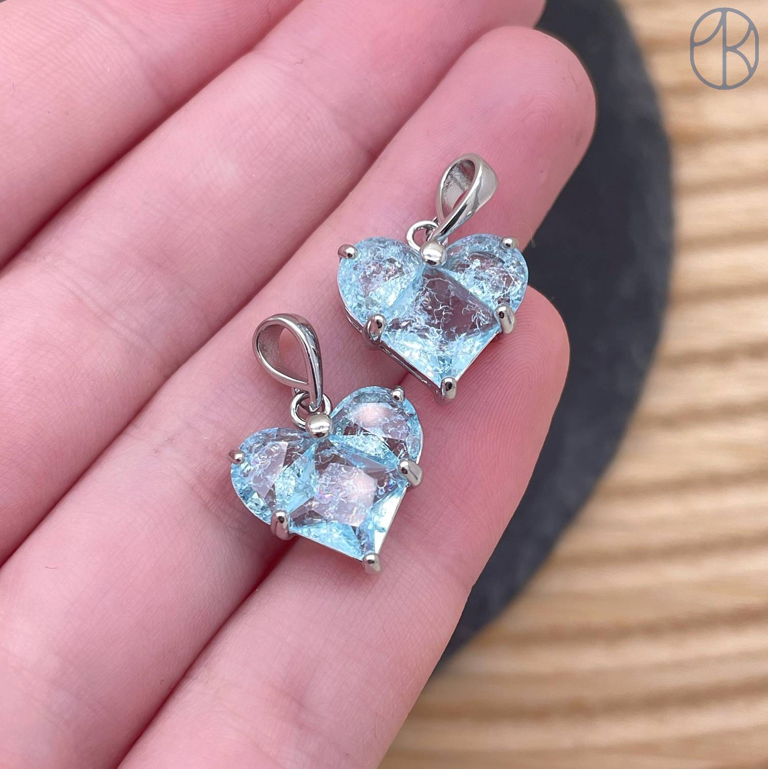 14х14 мм, Подвеска сердце голубой циркон с эффектом снежного кварца, цвет серебро
