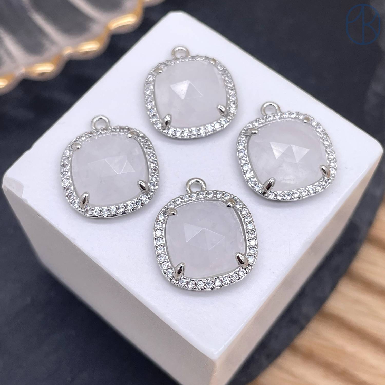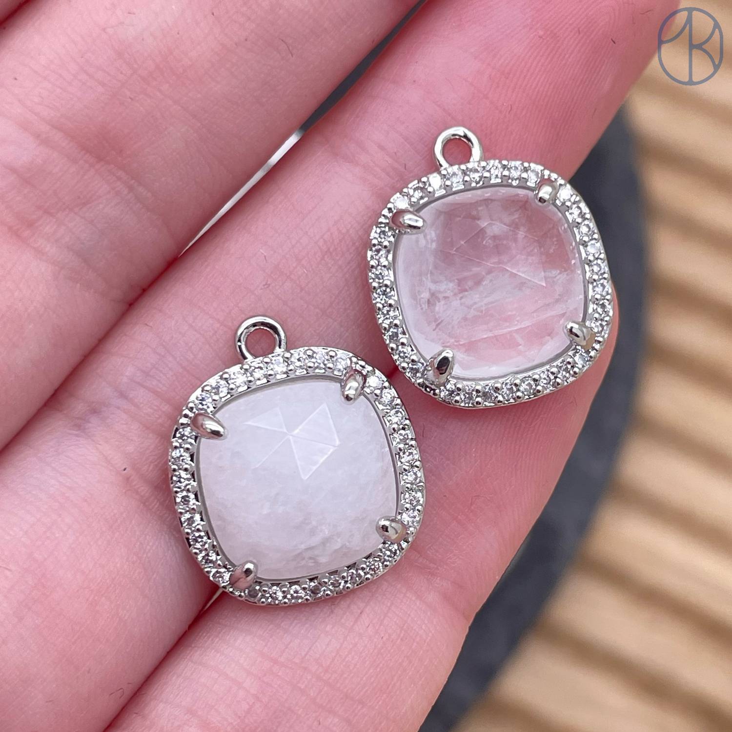 14мм, цвет серебро, Подвеска квадрат Горный хрусталь в обрамлении цирконы