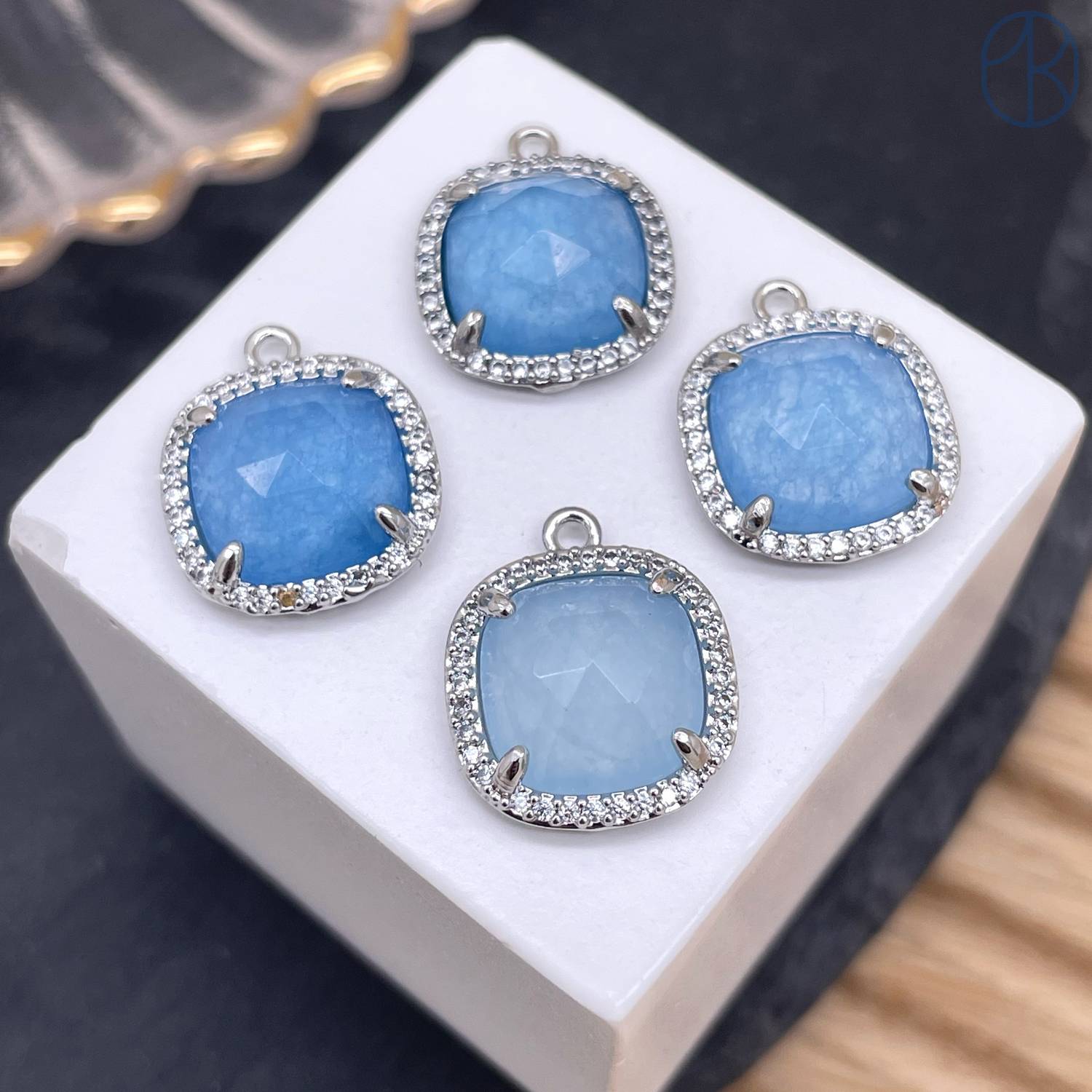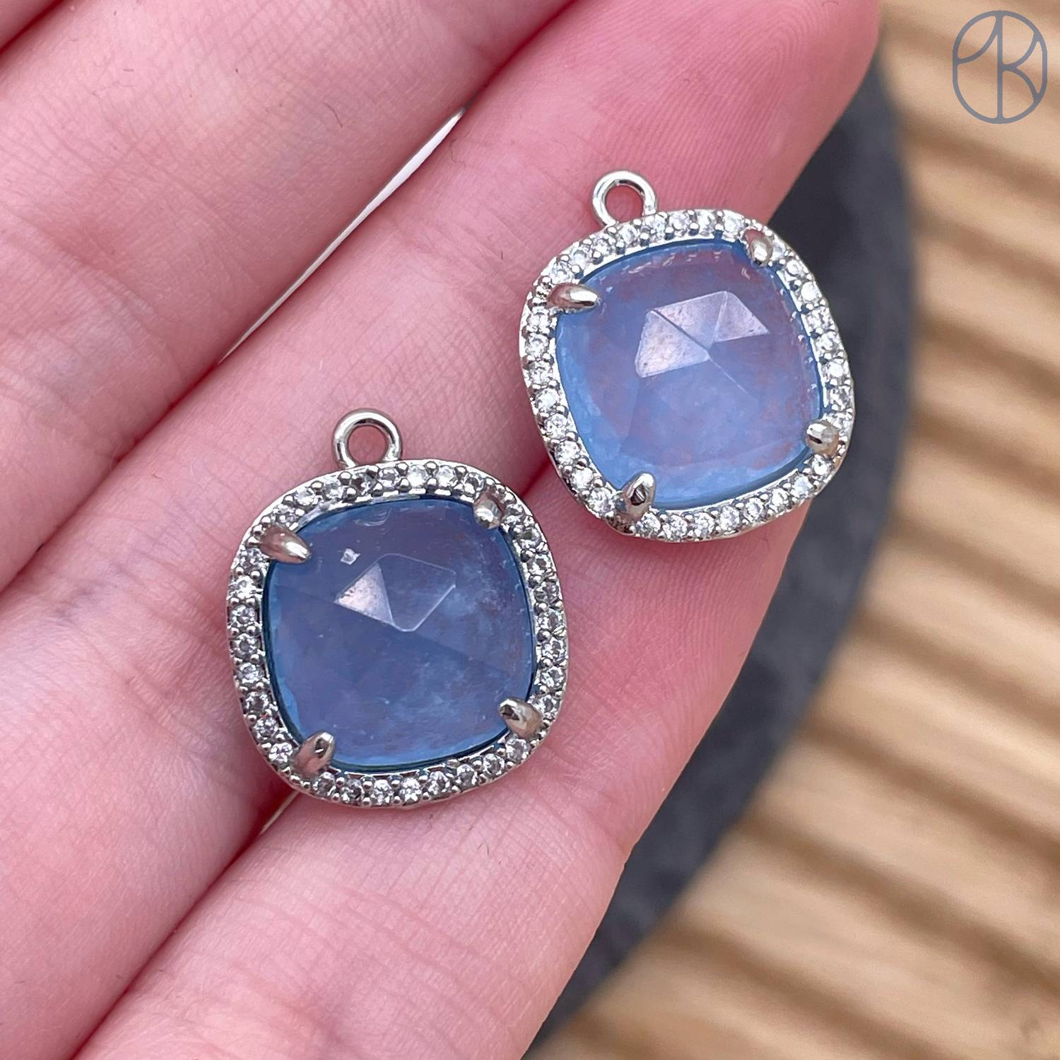 14мм, цвет серебро, Подвеска квадрат кварц тонированный голубой в обрамлении цирконы