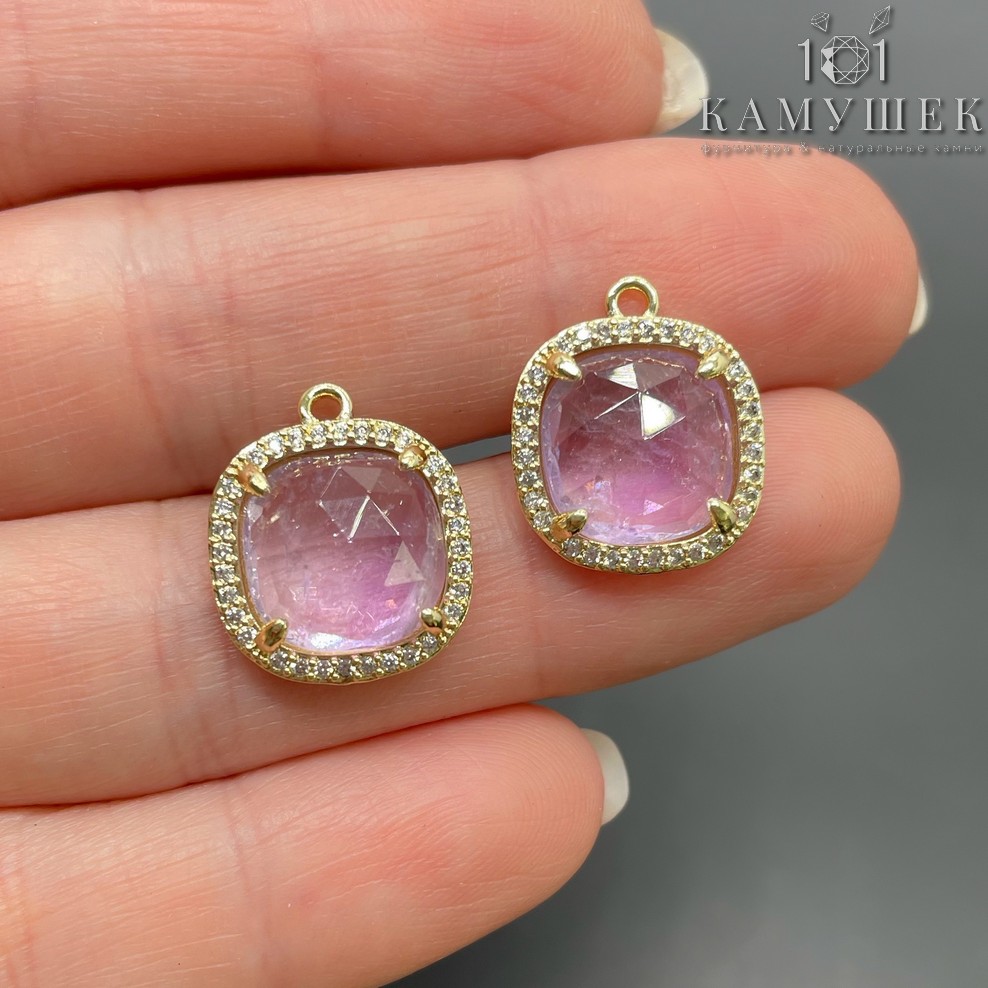 Подвеска квадрат цирконы аметист лавандовый, цвет золото 14 мм